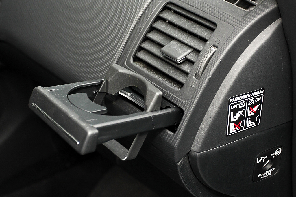 Nincs hely az egyedi, szokatlanul magasra emelt középkonzol körül, ezért a pohártartót közvetlenül az ajtó mellé száműzték - a vezetőnek és utasának is jutott egy-egy darab
