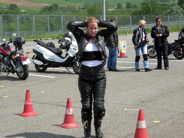 A Nemzetközi Női Motoros Nap alkalmából déltől a Hungaroringre várták a motoros nőket, ahol a Motoros Akadémia vezetéstechnikai centrumában, az iskola oktatóinak aktív közreműködésével próbálhatták ki tudásukat a résztvevők. Munkanap lévén, ezen a programon összesen tizenkét fő vett részt, ami a pálya méretét tekintve egyébként éppen optimális volt. A rövid elméleti felkészítést követően a hölgyek két órán keresztül gyakorolhatták a szlalomozást, a kanyarodást, és az egészen szűk fordulókat lábletétel nélkül. A program végén Szabó Attila, a Motoros Akadémia vezetője bemutatta az iskola speciálisan felkészített, kitámasztókerekekkel felszerelt oktatómotorját. Az iskola a résztvevőknek egy matricával kedveskedett, amelyet kifejezetten ez alkalomból készítettek.
