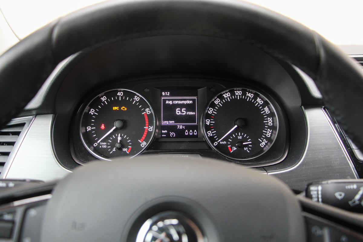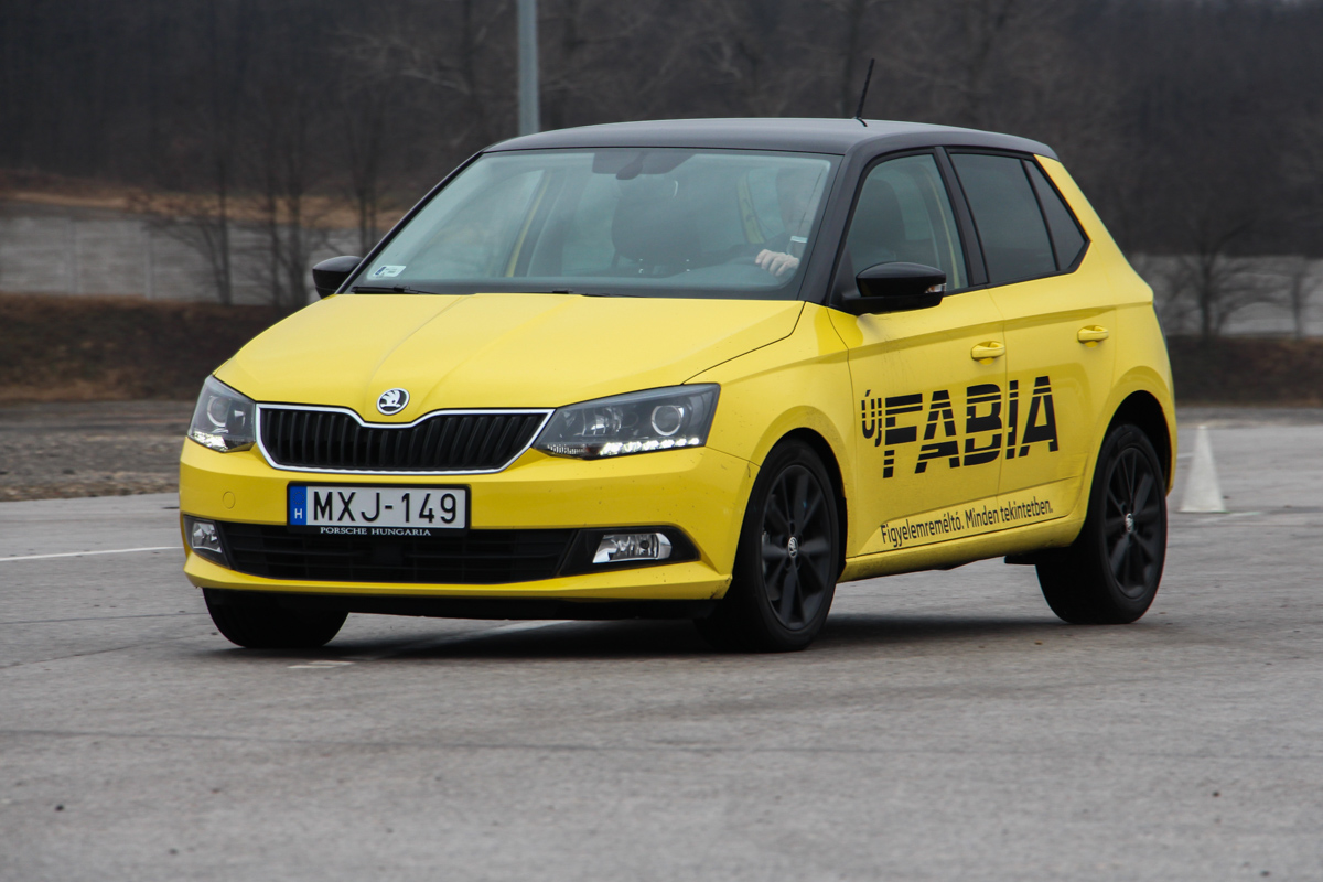 Komfortos. Nem csak az üléspozíció, az úttal való kapcsolat is komfortos. A 16 colos felniken feszülő 215/45 méretű gumiabroncsok bár peresebbek, mint amit megszokhattunk ebben a kategóriában, ez azonban nem megy a komfort rovására. Az elöl torziós stabilizátorral ellátott MacPherson, hátul pedig csatolt lengőkaros futómű hibátlan rugózást és csillapítást nyújt, még Budapest cudarabb minőségű útszakaszain is. Emellett attól sem kell tartani, ha komolyabb manőverre vagy nagyobb kanyarsebességre van szükség. A Fabia ilyen esetekben is megbízhatóan és stabilan viselkedik, szükség esetén az ESP finoman, alig észrevehetően avatkozik be. A vezető csak annyit érez, hogy az autó azon az íven fordul, amelyiken akarja.