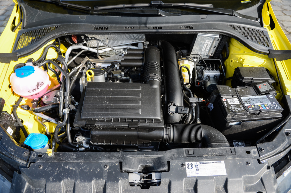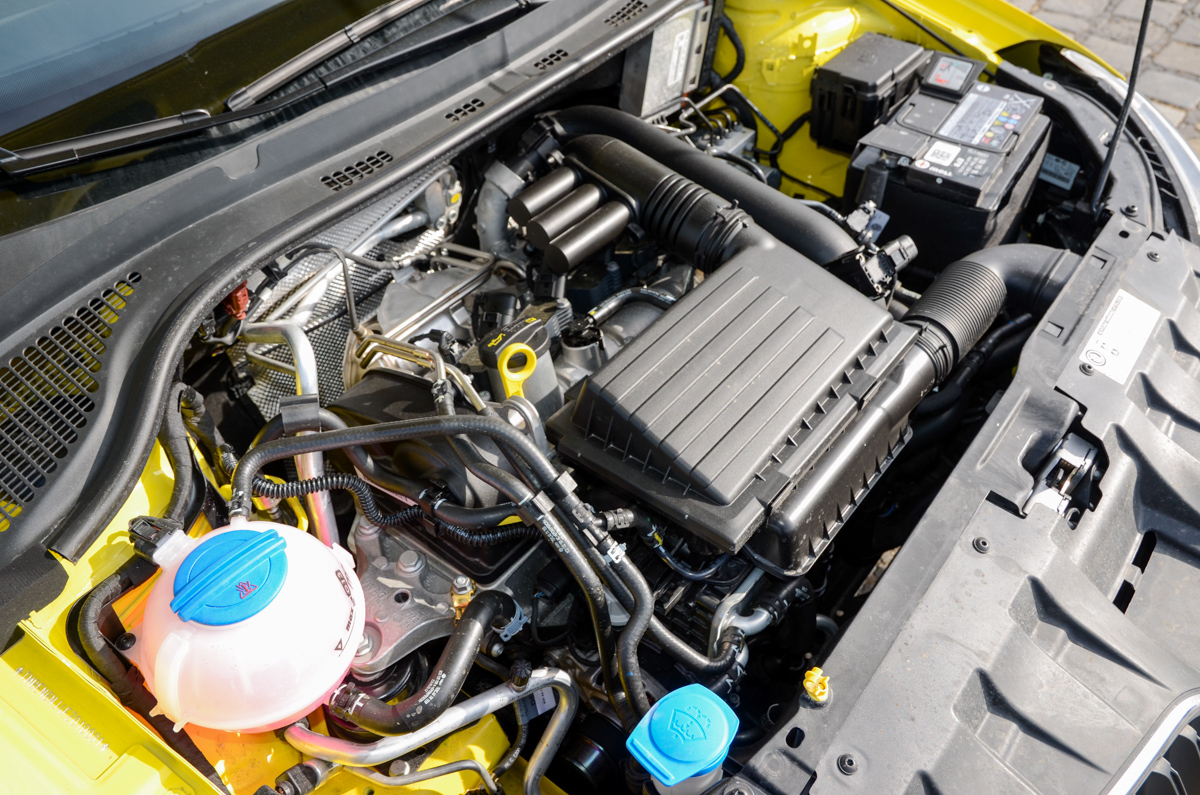 Csúcsmotor. Legalábbis egyelőre ez a legerősebb benzines az új Fabiában. A 110 lóerő és a 175 Nm nyomaték kellő rugalmassággal mozgatja az alig több, mint 1100 kg-os, elődjénél könnyebb autót. A 0-100 km/h gyorsulást 9,7 másodperc alatt abszolválja és akár 197 km/h-val is "repülhetünk" a sárga-fekete darázzsal. A forgatónyomaték széles, 1400-4000 1/perc fordulatszám-tartományban érhető el. A valóságban inkább 1800 1/perc körüli fordulattól húz jól a motor és alacsonyabb fordulaton a gázpedálra lépve is eltelik nagyjából két másodperc, amíg megérkezik a szükséges turbónyomás és vele együtt az a gyorsulás, amire szükségünk van.