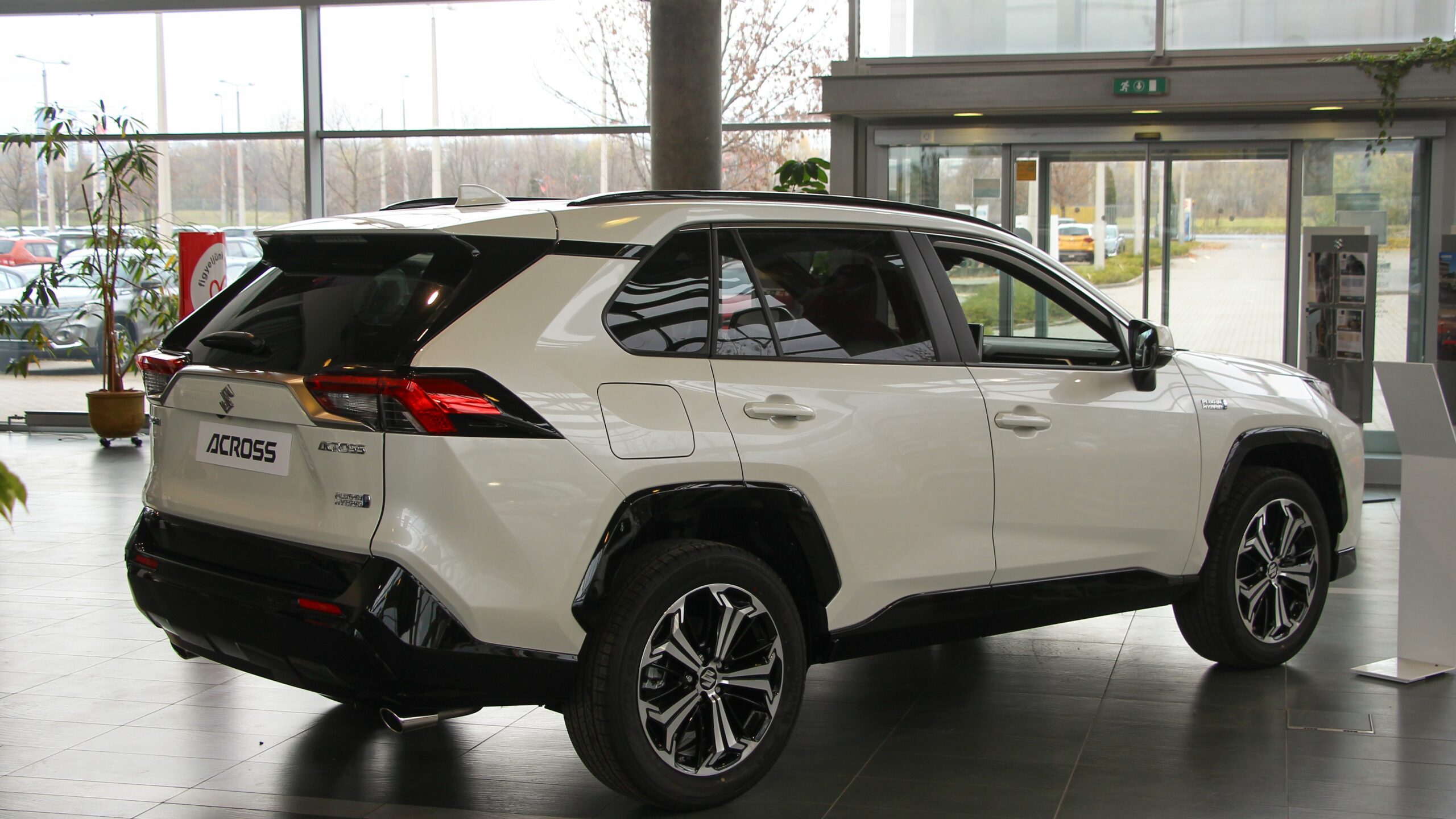 Szóval jól látható változás csak elöl történt, ahol teljesen új fényszórók, hűtőmaszk és lökhárító teszi egyedibbé a Suzukit. Hátul viszont csak a felirat más, itt büszkén hirdeti az autó, hogy plug-in hybrid hajtásrendszert kapott. Végül egyedi, 19 colos felniket is kap a Suzuki, amelyek ugyanolyan krómos csillogásúak, mint amilyenekkel a Toyota kínálatában is találkozhatunk.