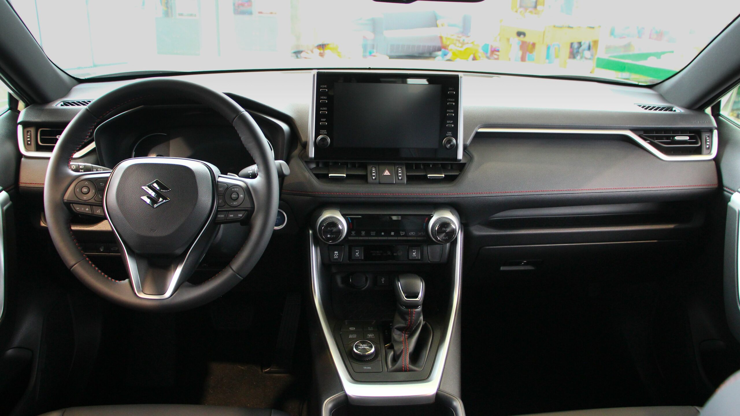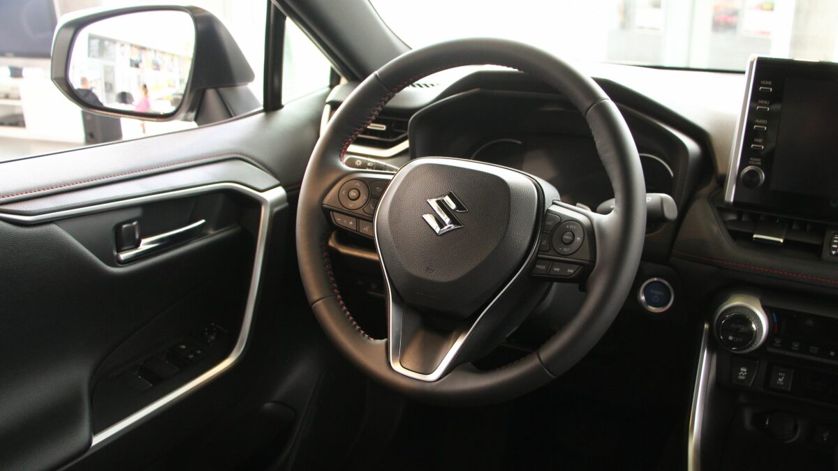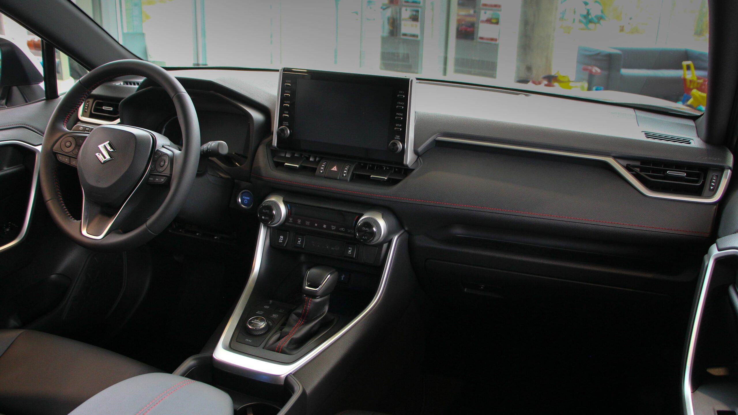 Bent sem más a helyzet, csupán a kormánykerék közepére ragasztott Suzuki emblémában különbözik a RAV4-től az autó, ami persze nem baj, hiszen az ergonómiára már abban sem lehetett panasz. Mivel a Suzukit csak csúcsfelszereltségű, GLX változatban lehet megvásárolni, ezért az utastérben mindenképp félbőr ülések fogadnak, amelyek elöl és hátul egyaránt fűthetők. A kormánykerék szintén tudja ezt a funkciót, emellett gazdag a biztonsági felszereltség is. Többek között adaptív tempomat, holttérfigyelő, aktív sávtartó, parkolóradarok és tolatókamera is szerepel a csomagban. Szóval a leendő vásárlónak igazából csak egyetlen dolgot kell kiválasztani, méghozzá az autó színét.