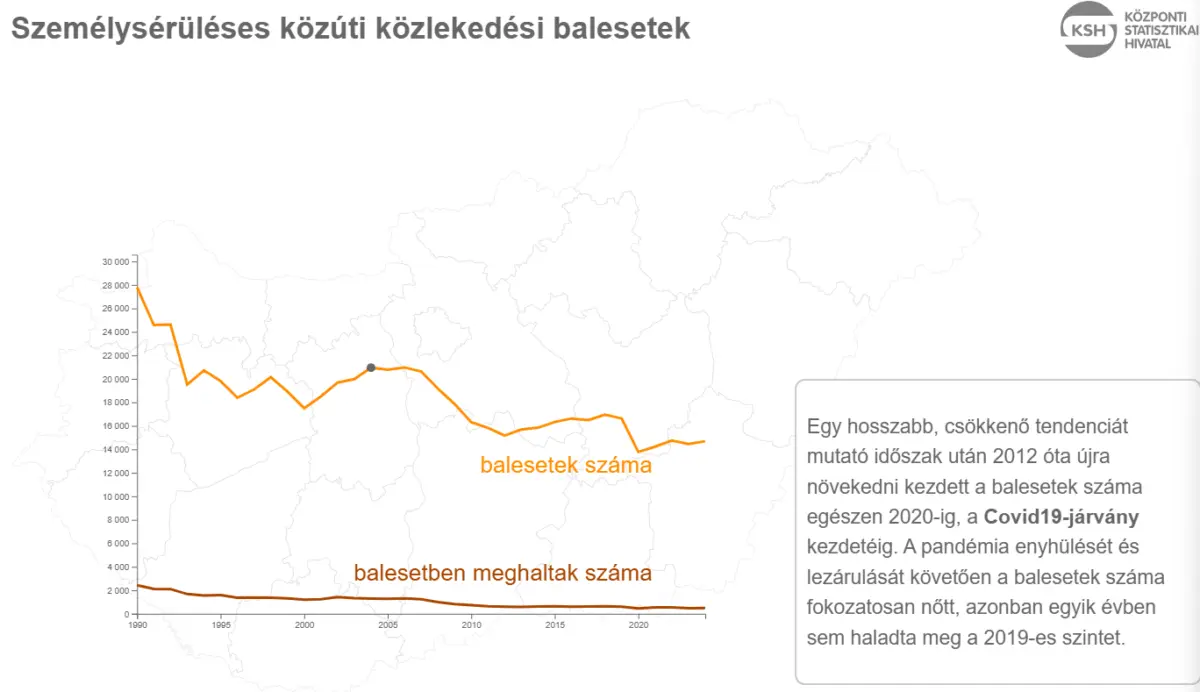 A KSH viszont mostantól interaktívabb, vizuálisabb köntösben igyekszik megmutatni mennyi baleset történik a magyar utakon, vagy épp azt, kik okozzák ezeket. Emellett olyan érdekességeket is találni a felületen, mint hogy melyik hónapban vagy épp a hét melyik napján történik a legtöbb személyisérüléses csattanás. A szóban forgó oldal ide kattintva érhető el.