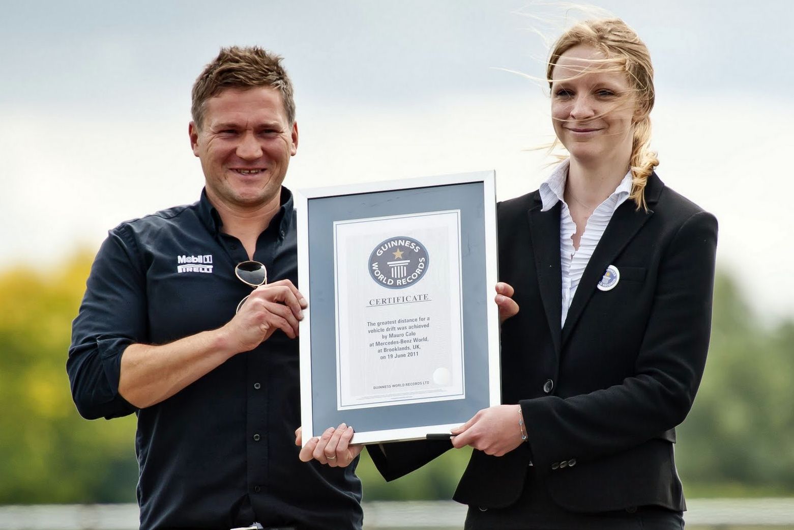 Világrekordot állítana fel a leghosszabb drift kategóriájában, ha munkaeszközét, a C 63 AMG sportlimuzint biztosítaná a cég a kísérlethez - a Mercedesnél pedig szeretik és elismerik őt, így aztán nem mondtak nemet. A pályán Mauro tett néhány bemelegítő kört, majda keresztbe vágta a kocsit, és innentől 2 308 méteren át folyamatosan "lapjával előre" rajzolta az íveket, füstöltek a gumik, és a közönség kezdett beleszédülni. Voltaképpen a gumik tűrőképességén múlt, hogy a fekete autó meddig tud mozgásban maradni, és a nyolcadik körben - ahogy előre sejteni lehetett - a legnagyobb terhelést kapó jobb hátsó volt az, amelyik megadta magát, és cafatokra szakadva lerepült a felniről. Az addig megtett táv azonban elegendő volt a Guiness rekordhoz.