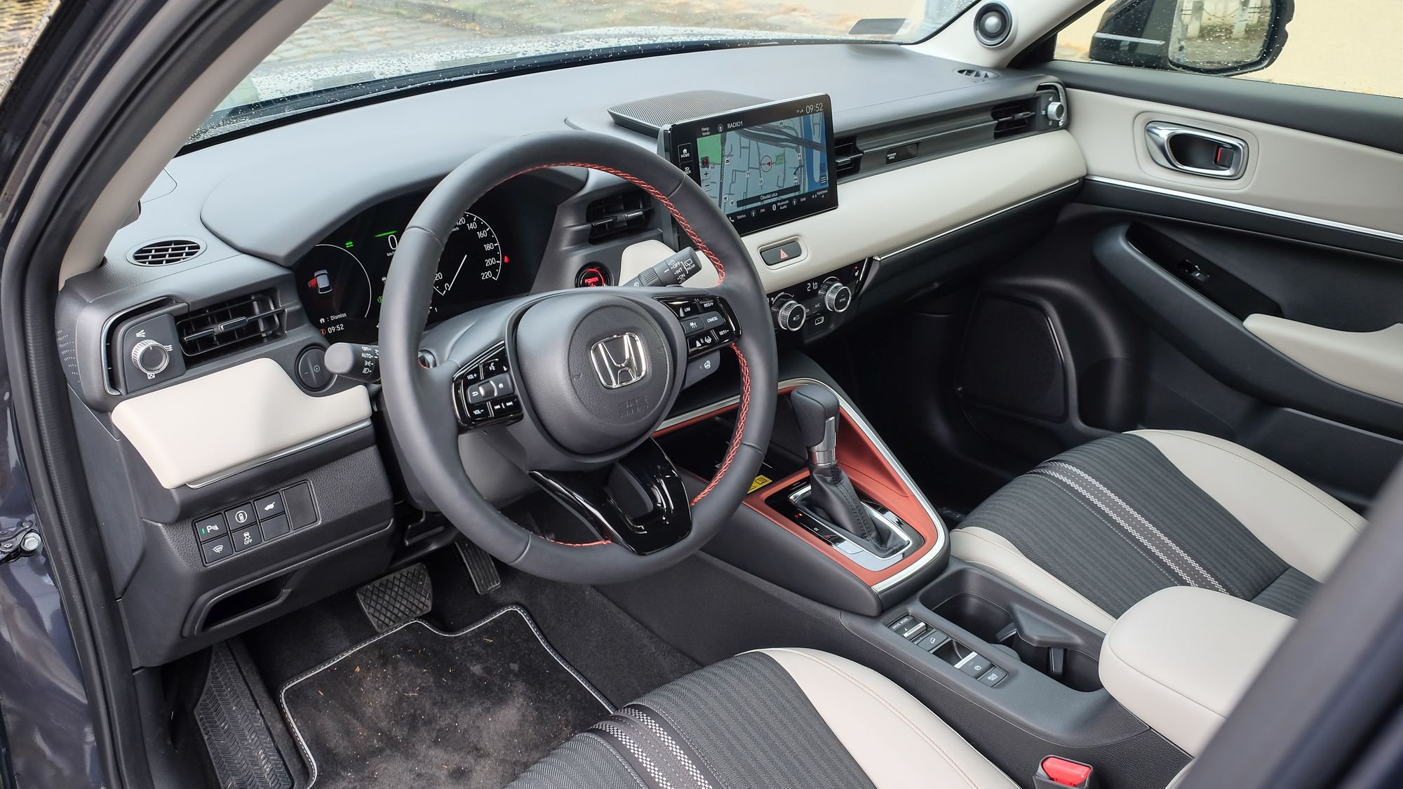 A HR-V egyik ütőkártyája az alapáras e:HEV hajtáslánca, városi tempónál (amit a Honda 40 km/óráig vesz), 91%-ban önállóan a villanymotor dolgozik, utána is áramtermelésre kapcsol csak be a benzinmotor, eleinte soros üzemben áramot termel, magasabb tempónál pedig egy kuplung által bekapcsolódik a hajtásba, de ott egyetlen fix áttételen keresztül, váltó nélkül hajt. A Honda érvelése, hogy hatékonyabb a közvetlen hajtás, mint a benzinmotor beindításáért is felelős indítógenerátor általi áramtermelés, annak akkumulátorba töltése, majd onnan a hajtó villanymotor kiszolgálása. A téli hidegben megejtett próbakörön a villanyautós üzem korlátozottan jött ki, türelmes gyorsítások mellett érhető el a tisztán elektromos haladás, de hibrides rutinnal valóban bevihető az étvágy 5 liter alá a városi, elővárosi forgalomban, autópályán azonban a Honda szerint sem leszünk 6 liter alatt, amin nem kell meglepődni.