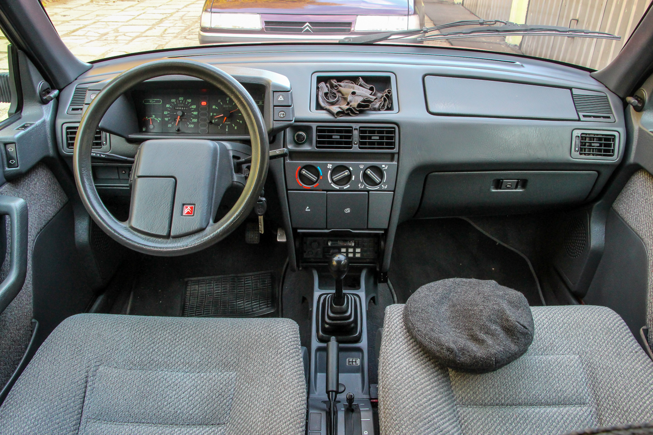 Micsoda véletlen, pont akadt egy 1991-es évjáratú Citroën BX is a tulaj autóparkjában, így egymás mellé állíthattuk őket. A két autó között csak 4 év korkülönbség van, konstrukciójában viszont jóval öregebb a BX, amit persze minden porcikáján érezni. Formabontóbb, még törésmentes a BX fara, ugyanakkor közös bennük a megtört kerékjárati ív használata, és, hogy nem rozsdásak. Természetesen a BX is patika állapotú, és az államat kerestem, mikor megtudtam, hogy még át sem fordult a futásszámláló hatodik rubrikája. Újabb csavar a sztoriban, hogy éppen nálunk lépte át a 100 000 futott kilométert, amit persze meg is örökítettünk.