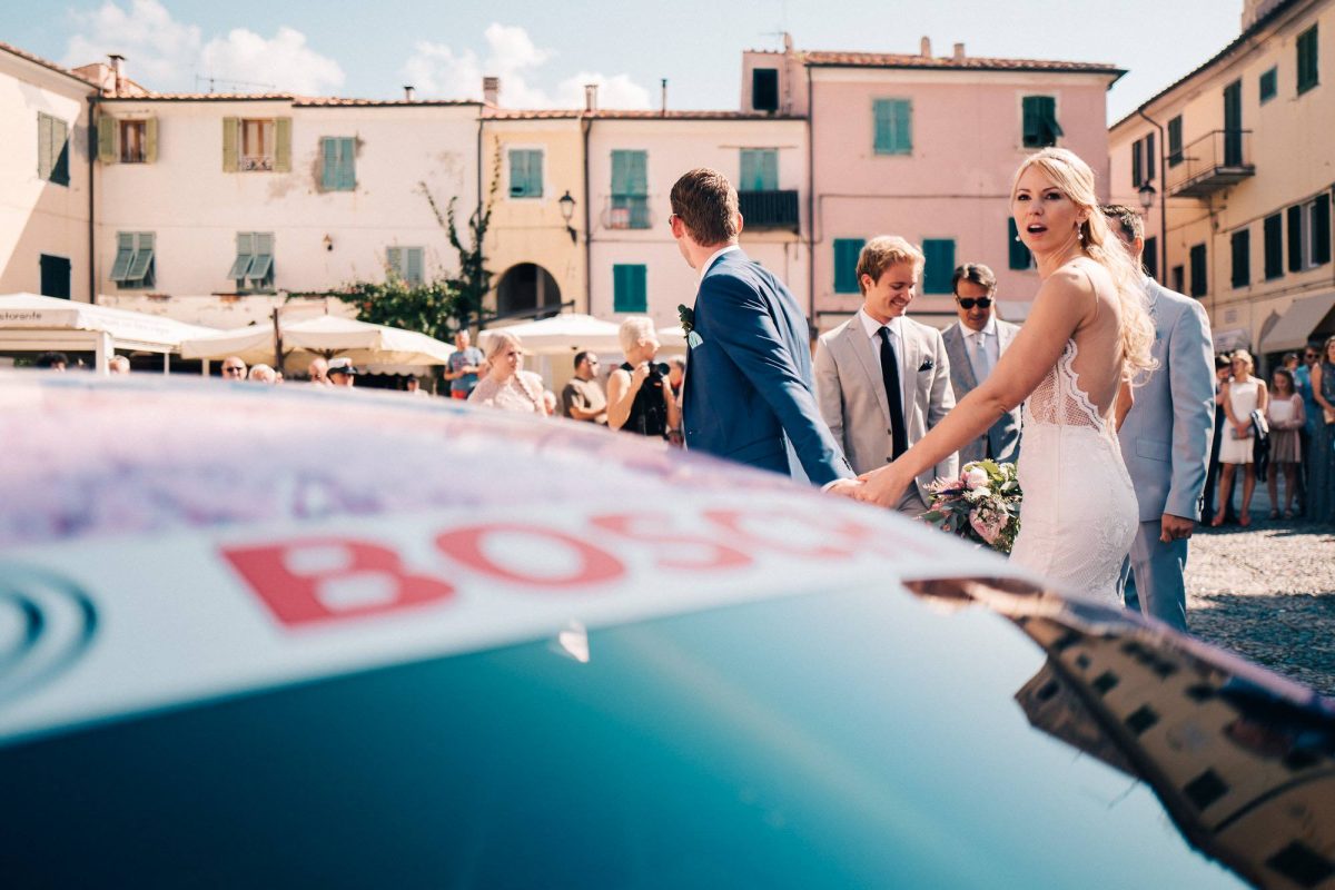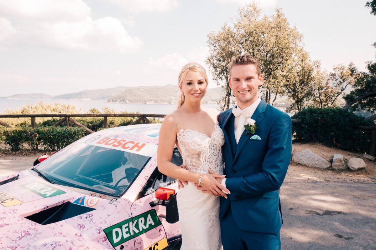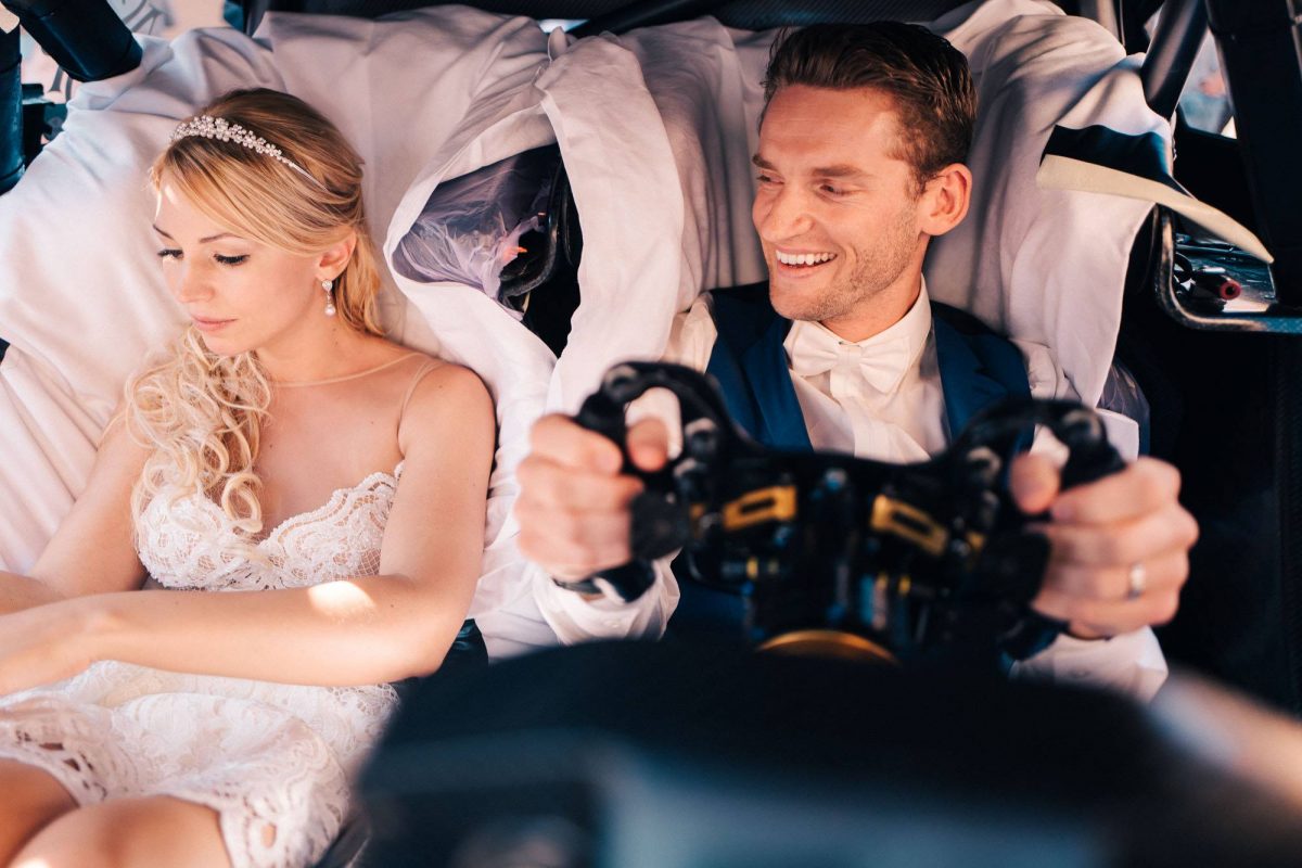 Persze Maro most sem bírta ki, teljesen kiöltözve is elrúgta az 500 lóerősre saccolt, kihegyezett túraautót, gyönyörű hitvesének pedig ezúton jár is minden tiszteletünk, hogy támogatja párját hóbortjában, és benne van a vadulásban esküvője alatt is. Azért fehér terítőkkel letakarták a kagylóüléseket, hogy ne koszosodjon a ruhájuk. Stílusosan szigszalagokat használtak a rögzítésükre. „Eldobtuk az agyunkat, amikor a csapat felajánlotta nekünk a versenyautót. Azon gondolkoztunk, hogy miként lehetne leginkább kiélvezni ezt a fél órát. Őrült érzés volt elautózni a templomtól, jobbomon a feleségemmel, majd szűk utakon autózni a halászfalukon át egészen a tengerpartig.” Sok boldogságot az ifjú párnak!