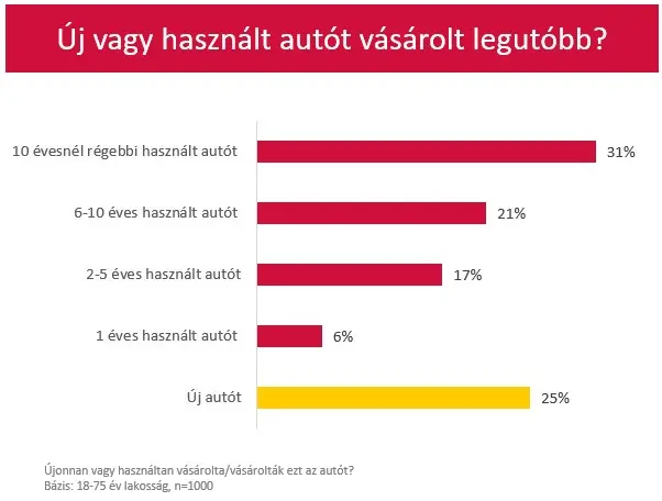 A magyarok többsége, 58 százaléka szerint idehaza az autó szinte családtagnak számít, és gépjárműtulajdonosok 85 százaléka valóban így is érez négykerekűje iránt. Meglévő kocsiját a megkérdezettek háromnegyede használtan vásárolta, felük 5 évnél régebbi modellt választott, közel harmaduk pedig tíz évnél régebbi gyártmányt engedhetett meg magának. Járművásárláskor a férfiak jóval nagyobb arányban választottak új autót, mint a nők, ahogy a 60 év feletti vásárlók, a felsőfokú végzettséggel rendelkezők és a fővárosban élők között is az átlagnál jóval többen döntenek új autó beszerzése mellett. A gépjárművel rendelkezők kétharmada önerőből vásárolta meglévő autóját, sokan pedig részben vagy egészben hitelt, illetve vannak, akik autólízinget vettek igénybe. Tízből hétnek már lejárt a finanszírozása, és döntő többségük (85%) ezután megtartotta kocsiját, de néhányan családtagoknak adták tovább (7%) vagy a piacon értékesítették (6%), illetve beszámíttatták új autó vásárlásába (3%).