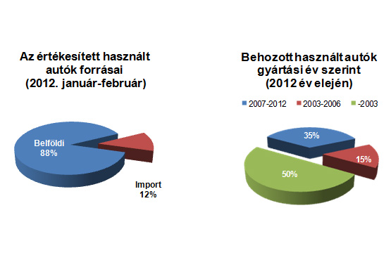 Hiába nőtt a használtautó-import, az sem tudja önmagában felpörgetni a piacot. Noha az év elején a legtöbb gépjármű-kategóriában jelentősen csökkent regisztrációs adó komoly löketet adott az autóbehozatalnak, s az az első negyedévben több mint duplája lett (+116 százalék) a 2011 hasonló időszakában mért értéknek, a hazai kínálaton ez még mindig nem sokat dobott. A használt-eladások forrása ugyanis mindössze 12 százalékban külföldi, s a maradék 88 százalékban belföldi autó. Tovább rontja a helyzetet, hogy a külföldről behozott autók fele 9 évnél idősebb, alacsonyabb értékű modell, míg 15 százalékuk 2003-2006 közötti gyártású, s csupán a maradék 35 százalék 5 évnél fiatalabb, értékesebb példány. A behozott autók kor-aránya jól mutatja azt, amit a piaci szereplők is sugallnak: a szerény fizetőképességű vásárlók elsősorban a kifejezetten olcsó, 10 év körüli és 1 millió forint alatti modelleket keresik, a másik húzó szegmens vevői pedig a drágább, fiatalabb példányokat keresik. A hazai kínálatot alig érezhetően növeli a csak lassan növekvő újautó-eladás.