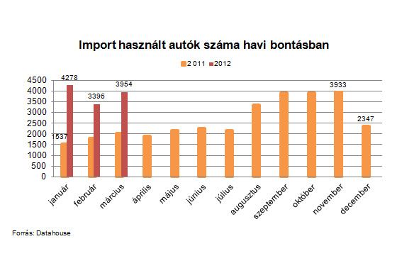 Jól látható, hogy több mint kétszer annyi autó érkezik külföldről mint egy évvel korábban