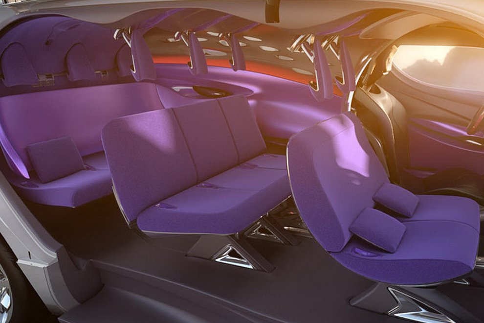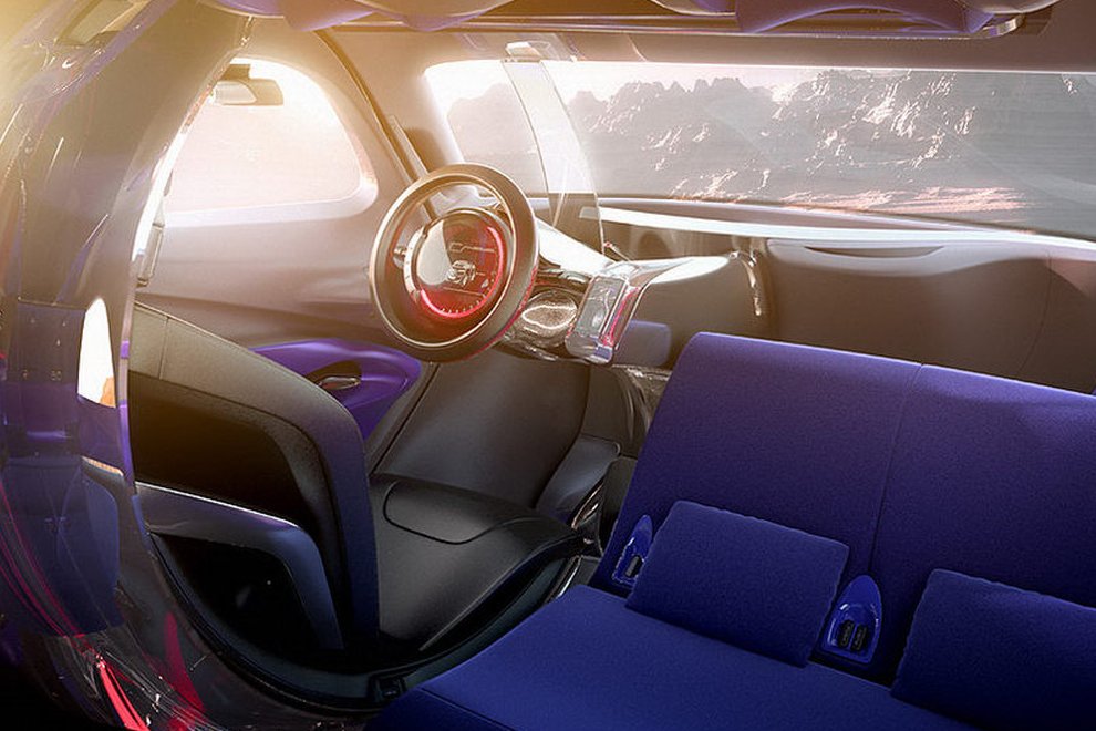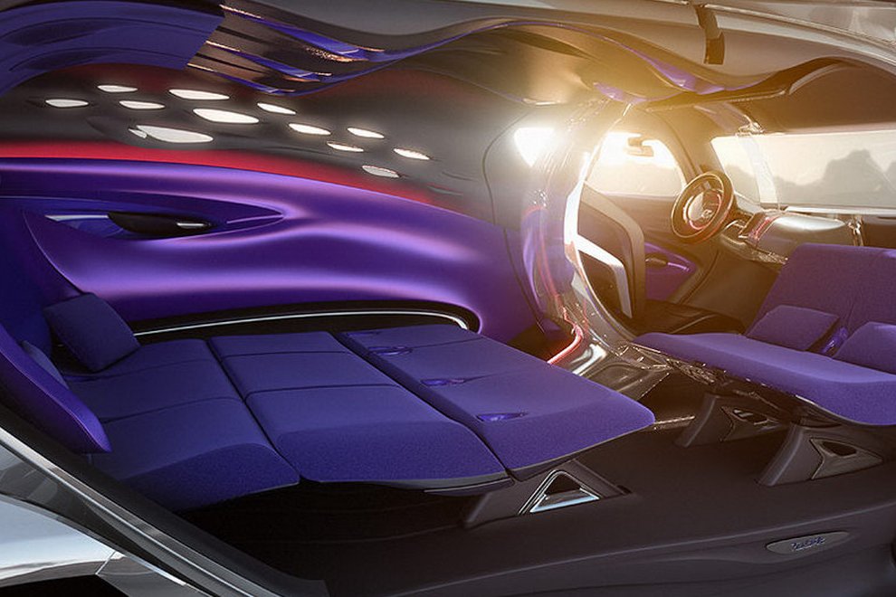 A beszálláshoz a hosszú oldalajtók felfelé nyílnak, míg a sofőrt az ülést, a pedálokat, a kormánykereket és a head-up displayt egy félkör alakú, részecskegyorsítónak nevezett kapszulába rendezték, az indításhoz kulcs vagy jeladó helyett ujjlenyomat-felismerő rendszer azonosítja a vezetőt. Az utasok szórakoztatásáról hatalmas TV-képernyő és surround hifirendszer gondoskodik.
