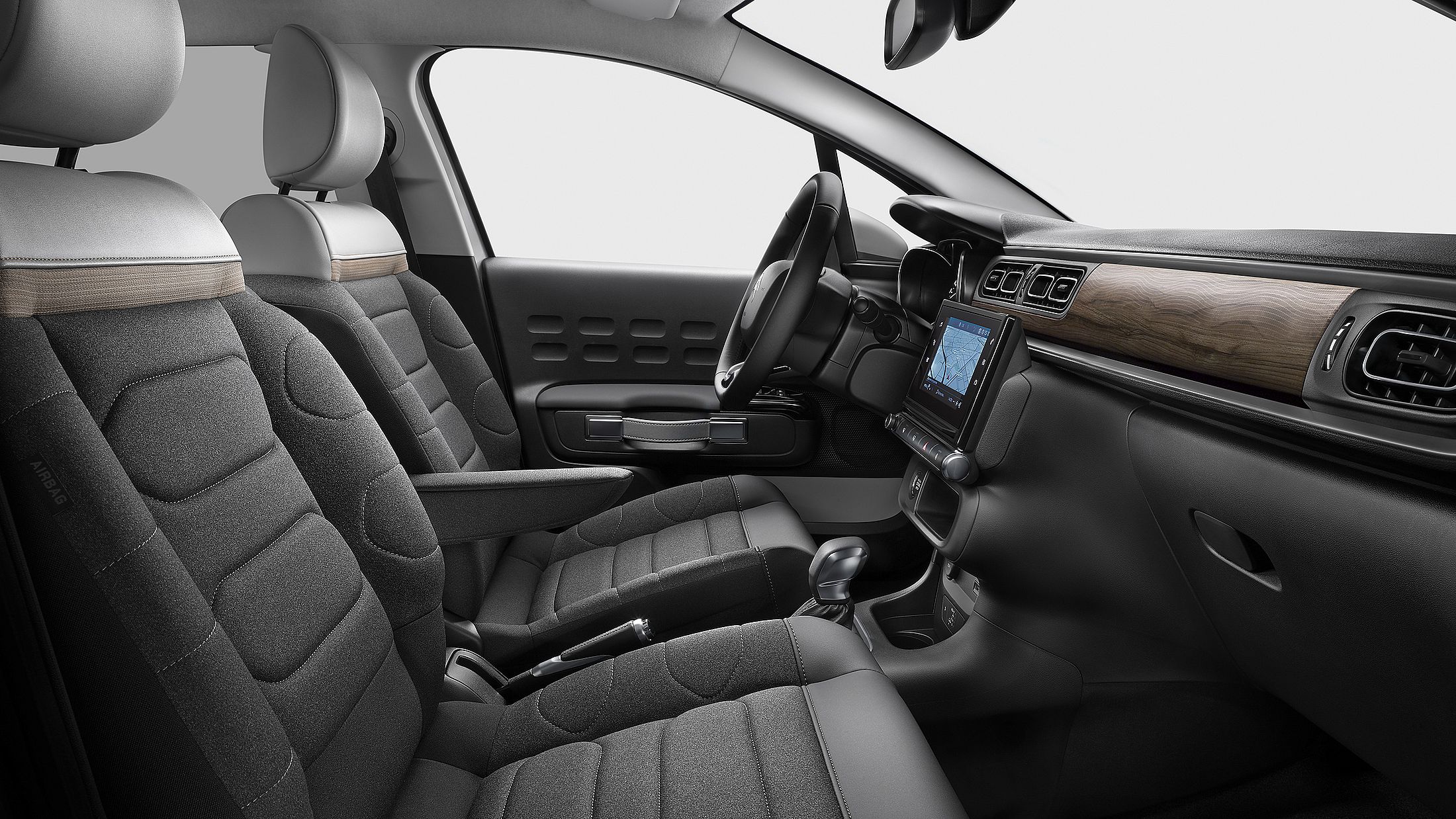 Az utastérben az új üléseket, illetve a könyöktámaszt hozta a frissítés, ám természetesen a technika fejlesztéséről sem feledkeztek meg a tervezők, így már okostelefon tükrözést is tud az infotainment rendszer 7 colos, érintőképernyős kijelzője. Emellett más kényelmi és biztonsági extrák is megjelentek a C3-asban, így már egészen pontosan 12 különböző segéd válogatható bele. Többek között kulcs nélküli nyitás és indítás, parkolóradar elöl és hátul, visszagurulásgátló, aktív vészfék, holttérfigyelő, tolatókamera, táblafelismerő és a távolsági fényszórók automatikus kezelése is gazdagítja a C3-as technikáját.