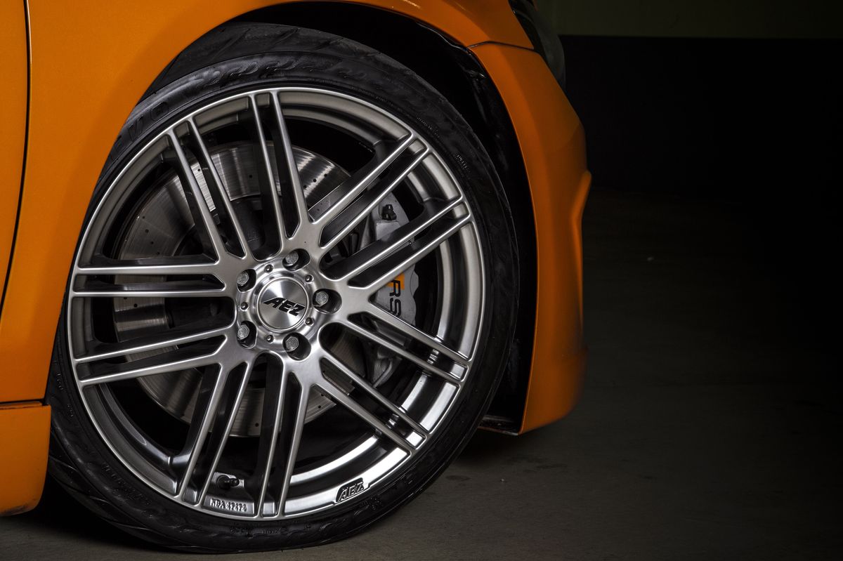 Mit is tud ez? Alapból egy 1.4 TSI, 160 lóerős, kéziváltós, piros példány volt. Ez alakult át tavaly igen alaposan. A teljes átépítés követhető a lenti videóban, de azt azért érdemes kiemelni, hogy teljesítménye az MTM chiptuningjának és a Proex kipufogórendszer áthangolásának köszönhetően 210 lóerőre nőtt. Az átalakítás természetesen mindenre kiterjedt, a futómű a típushoz gyártott állítható keménységű és magasságú Koni lengéscsillapítókat kapott a hazai forgalmazó Kárászy Kft-től, a felnik 19 colos AEZ Cliff modellek az Alcar kínálatából. Az abroncsok 235/35-ös Federal 595 Evók. A nagyobb teljesítményhez természetesen nagyobb fékek is dukálnak, a 19 colos felnik mögé az Audi TT RS 370 mm átmérőjű hűtött tárcsái kerültek.