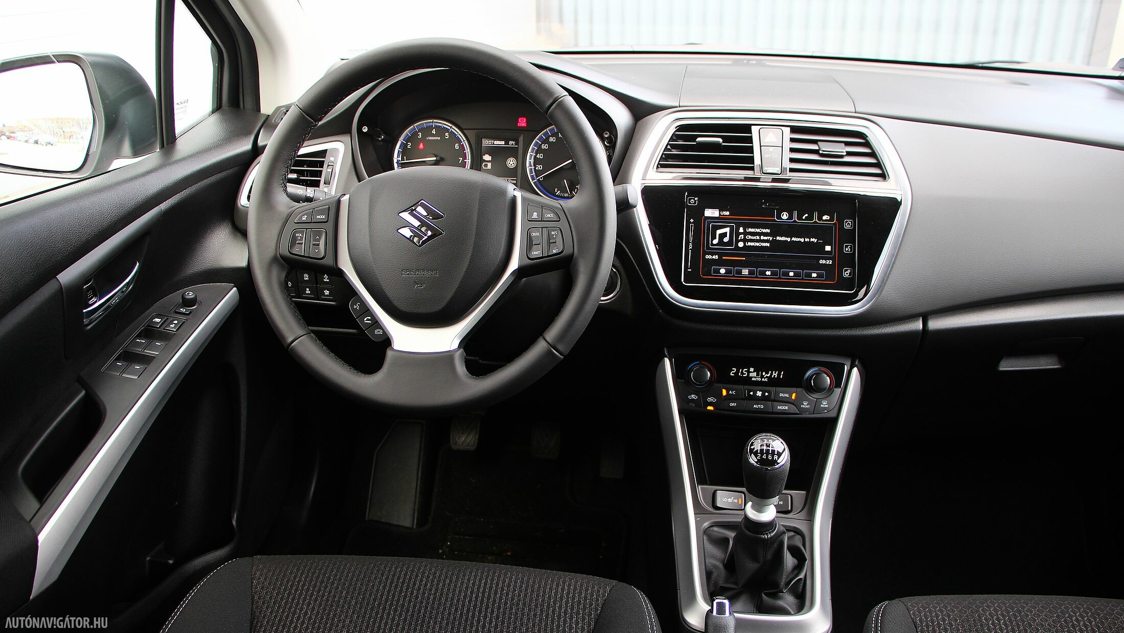 A sors kegyelméből tavaly pontosan ugyanekkor, március elején járt nálam az SX4 S-Cross, ugyanúgy az 1.4 Boosterjet motorral, igaz automatikus váltóval. A fogyasztásbeli különbség több mint egy liter, ráadásul most többnyire városban használtam az autót egy kevés autópályázással. Szóval a 7,5 literes átlagfogyasztás igazi vegyes használatban még kevesebb lehet, főleg egy bejáratott motorral, mert most még csak 400 kilométer volt az autóban. Ó, de várjunk csak – gondolhatták az előző bekezdésnél többen is – mi az, hogy gyengébb? Bizony, 140 lóerő helyett már csak 130 lóerővel lehet gazdálkodni, de ez bőven elég az üresen 1265 grammos SX4 mozgatásához. Főleg, hogy Sport üzemmód is a rendelkezésre áll. Ezt választva nagyobb nyomaték jut a hátsó kerekekre, illetve élénkebben reagál a motor a gázadásra. Persze a spórolósabbaknak az Autó mód az ideális, amikor a fogyasztás minimalizálására törekszik az autó és csak akkor kapcsol összkerékhajtásra, ha megcsúszást érzékel. Választható még Snow mód a csúszós útfelületekhez, valamint letérve a földutakra, vagy kalandvágytól vezérelve a sárba gurulva a Lock mód segíthet onnan kijutni. Kipróbáltam és kellemes meglepetésként igencsak mély sárból is kihozott. [BANNER type="1"] Szilárd burkolaton is kellemes egyébként a futómű, nem túl feszes, a 17 colos alukerekek sem rontanak túlzottan a komforton. Szépen átlibegünk az úthibákon, miközben a kormány közvetlensége egy kis élményt is próbál csempészni a vezetésbe, de azért jól jönne még több visszajelzés is. Nehéz igazi negatívumot találni, ami nem csak csomó keresése a kákán, és ez igazi erénye ennek az autónak. Aki egy kedvelhető, észszerű autót keres, nem az érzelmektől vezérelve, mindenképp kezdje el böngészni az árlistát. A GLX „luxusa” persze drágább, bár most kedvezményesen, 6,6 millió forinttól elvihető, és gazdagon felszerelt. Többek között olyan tételek találhatók a felszereltségi listáján, mint az adaptív tempomat, a parkolóradarok elöl és hátul, a tolatókamera, a kétzónás automata klíma, a kulcsnélküli motorindítás, a radaros vészfékasszisztens, illetve a visszagurulásgátló. Kell ennél több?