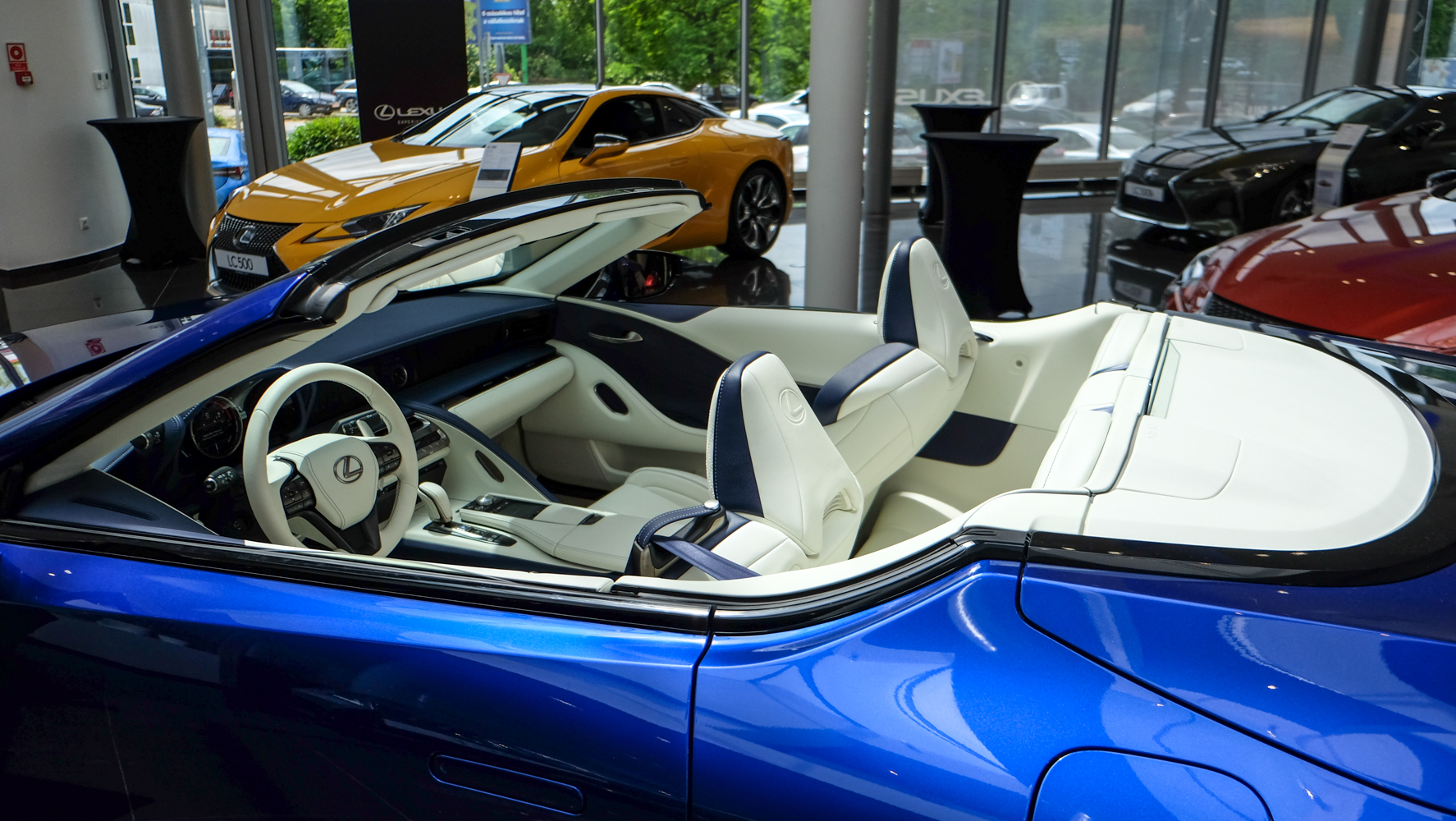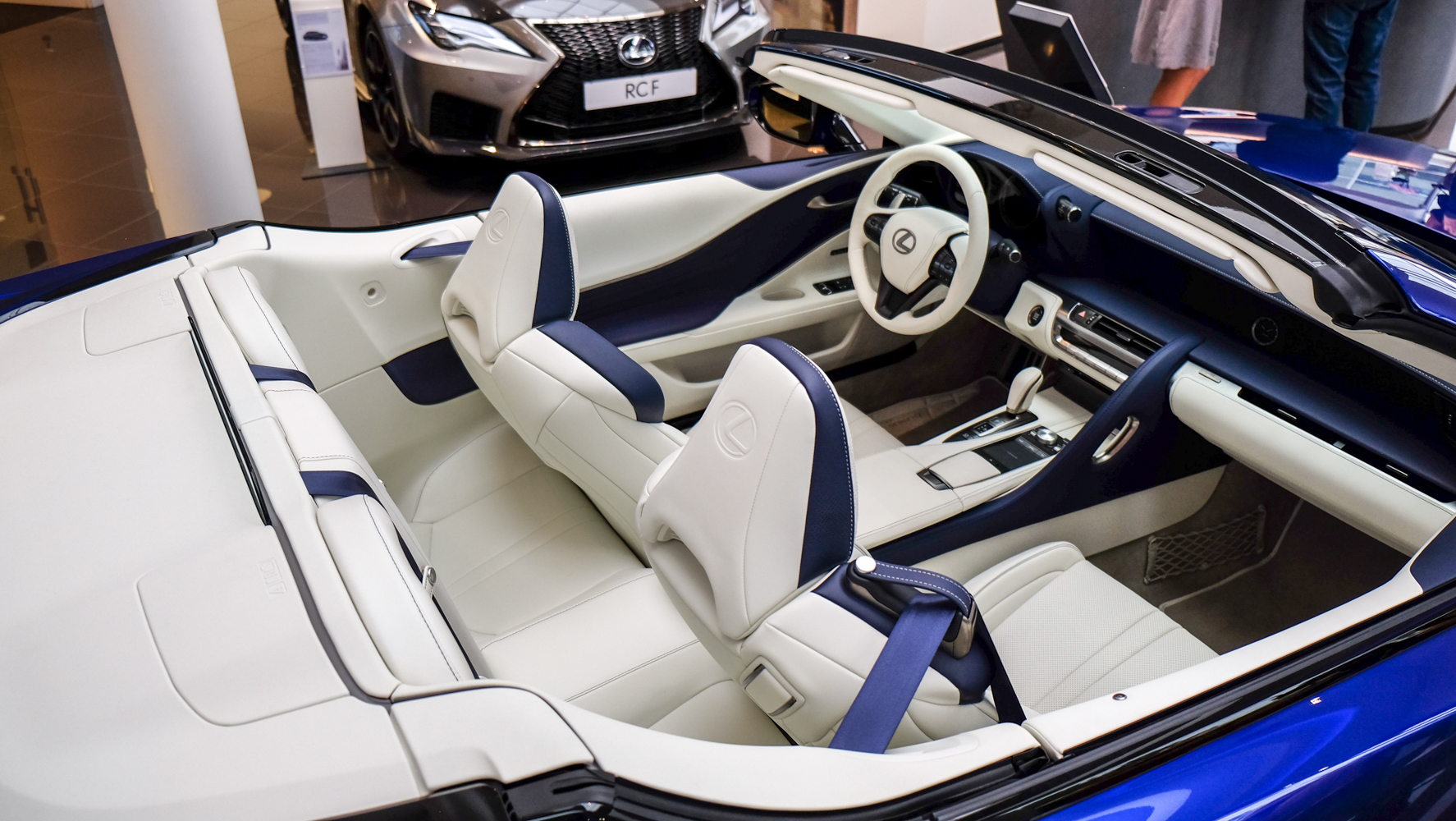 Míg a kupé esetében a bevezetéskor is volt lehetőség a konfigurálásra, addig a Convertible csakis csúcsfelszereltségben érhető el. Valamint egy limitált kiadásban is, ami a fotókon szereplő kék külső, fehér belső és kék tető kombináció. Az LC 500 Convertible olyan vezetéstámogató rendszerekkel szolgál, mint a holttérfigyelő, hátsó keresztirányú forgalomfigyelő, valamint a Lexus Safety System+, mely ütközés előtti biztonsági rendszert, adaptív tempomatot, sávtartót, táblafelismerőt, automata távfényt és gyalogos-, valamint kerékpáros figyelő rendszert tartalmaz. Változó csillapítású felfüggesztés, tolatókamera és parkolószenzorok is szerepelnek az alapáras listán. Tripla bi-LED fényszórók, Mark Levinson hifi, navigációs rendszer, aktív zajszűrő rendszer és egy halom kényelmi extra is magától értetődő, valamint minőségi anyaghasználat a bőrtől kezdve az Alcantaráig.