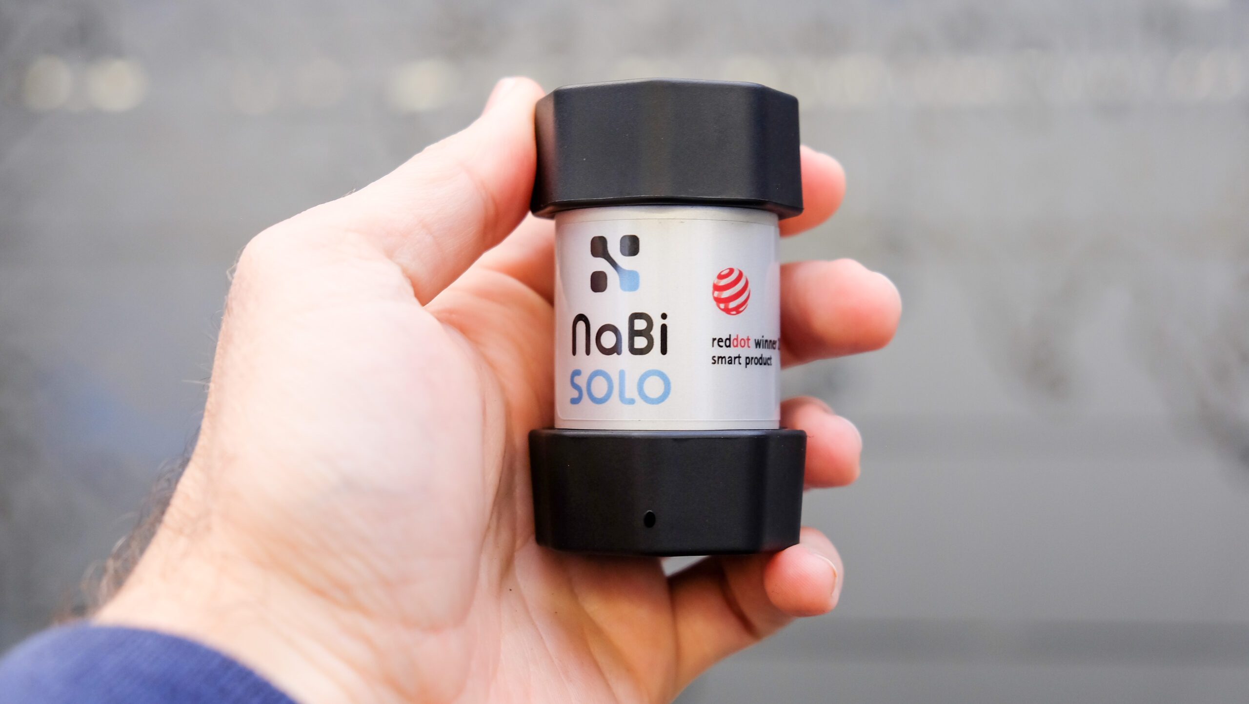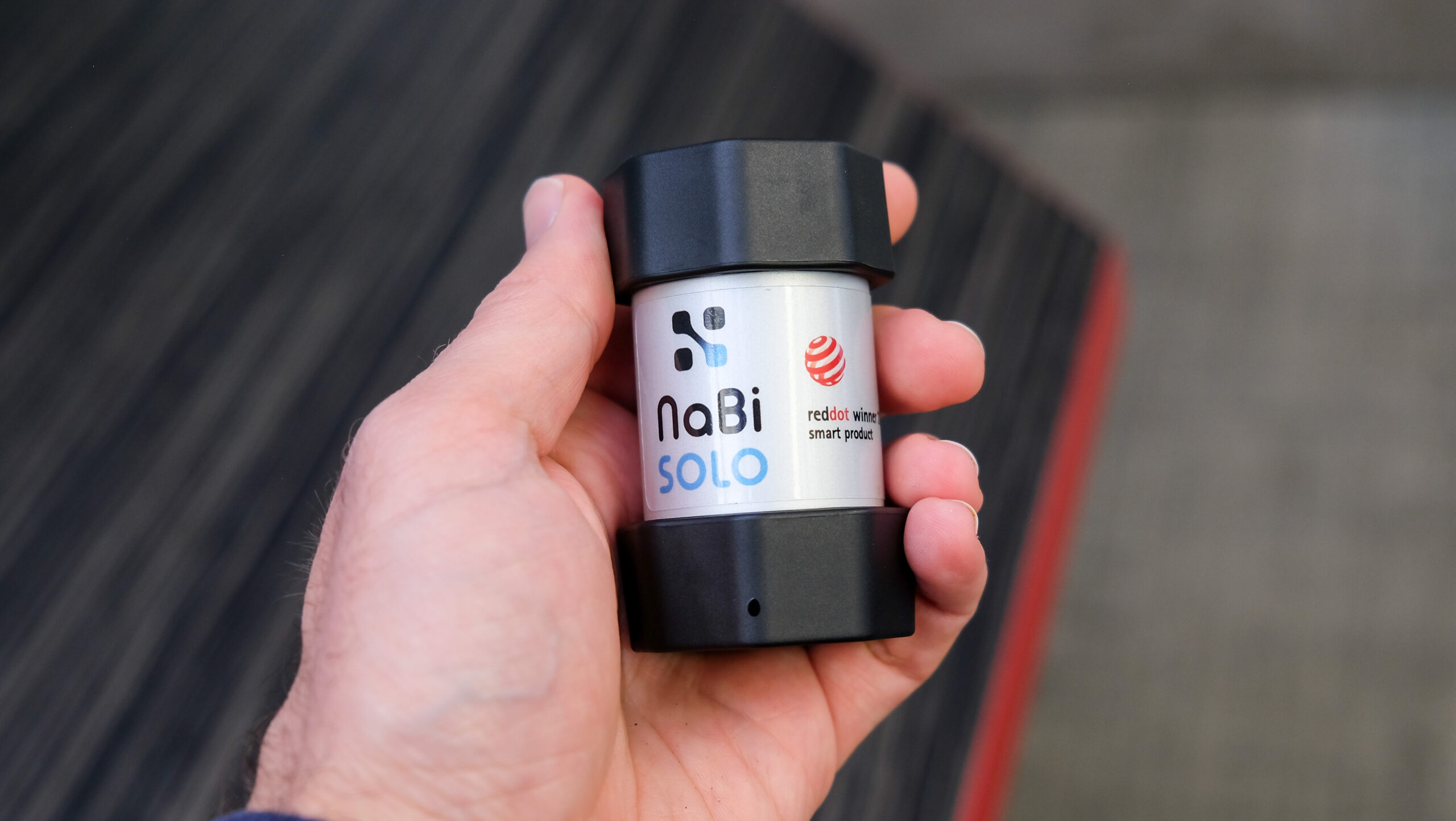 Jól látható hogy egy marokban is elfér, akár egy motorkerékpárban is jól elrejthető. A NaBi Red Dot design díjat nyert "Smart Product" kategóriában, ezzel az Apple, a Google, a Honda vagy a Volvo okos termékeivel került egy polcra