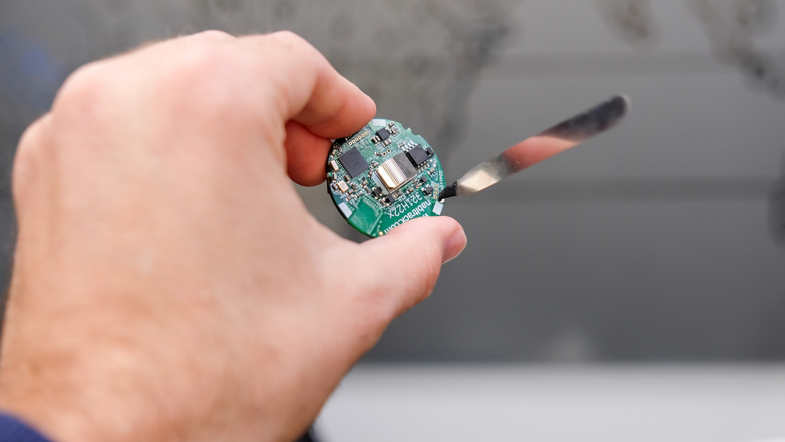 Apró készülék a NaBi nyomkövető - szinte bármiben elrejthető, GPS-szel és 4G/5G kommunikációs modullal, borulás- és rezgésérzékelővel, hőmérővel is felszerelt, saját elemével évekig működik, sem tápot, sem töltögetést nem igényel