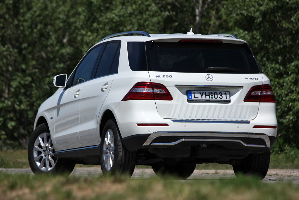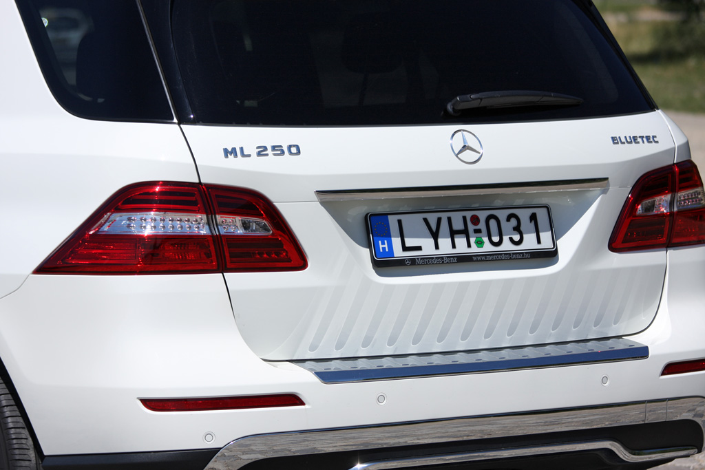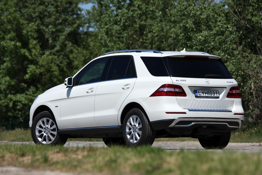 Terepjárónak tűnő, különben terepjárásra is alkalmas, csak általában nem feltétlen arra használt az ML. Hogy remek legyen az alaktényezője, lecsippentettek a puccos tükréből, kár, mert néha zavaróan kicsi. A volt 280 CDI helyett most ez a 250 Bluetec az alapdízel