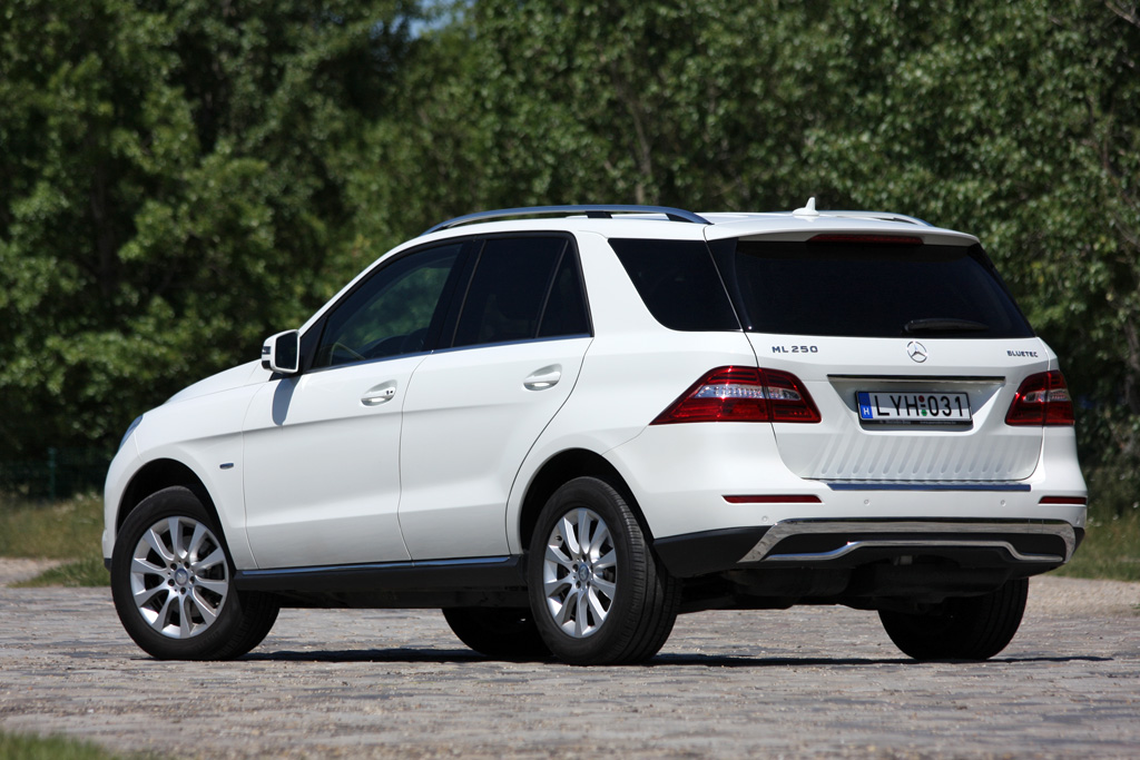 harmadik generációs ML is az Egyesült Államokban és Mexikóban készül. Méretein kívül így divatos fehérben, sötét üvegezéssel, gigantikus csillagjával, krómdíszeivel, nappali menetfényes LED-sorával és a 250 BlueTEC esetében különösen hangsúlyos, takarékos és tiszta üzemet harsogó üzenetével ügyesen feledteti, hogy a modellváltással csöppet megcsúnyult – nyilván véleményes, de mintha elődje harmonikusabb lett volna.