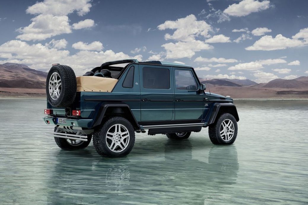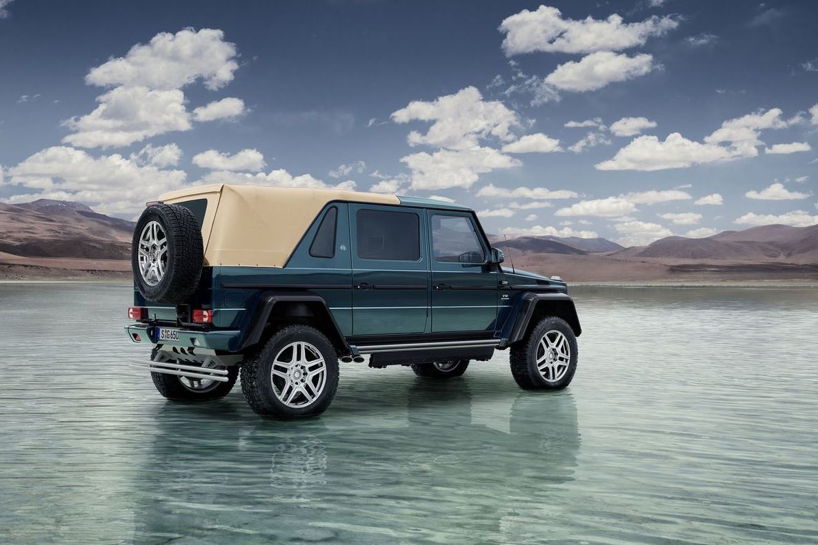 Csaknem 58 centis hosszabbítással több mint 5,1 méter hosszú, portáltengelyeivel 45 centis hasmagasságot adó a Mercedes-Maybach G 650 Landaulet