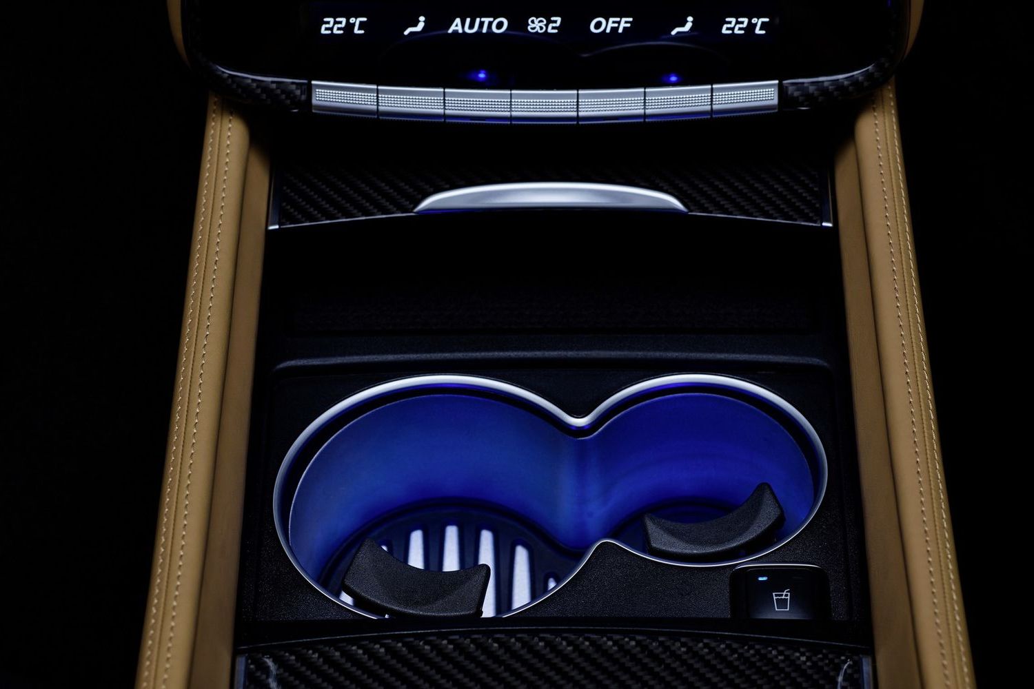 Lenyitható asztalkák, 10 colos kijelzők, hűthető-fűthető (a temperálásnak megfelelően kék, illetve piros LED fényt adó) pohártartók, valamint elektromosan szabályozható, a S-osztályból való masszázsülések járnak a hátul utazóknak