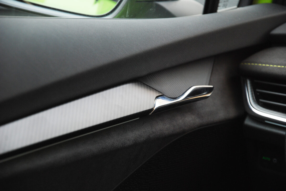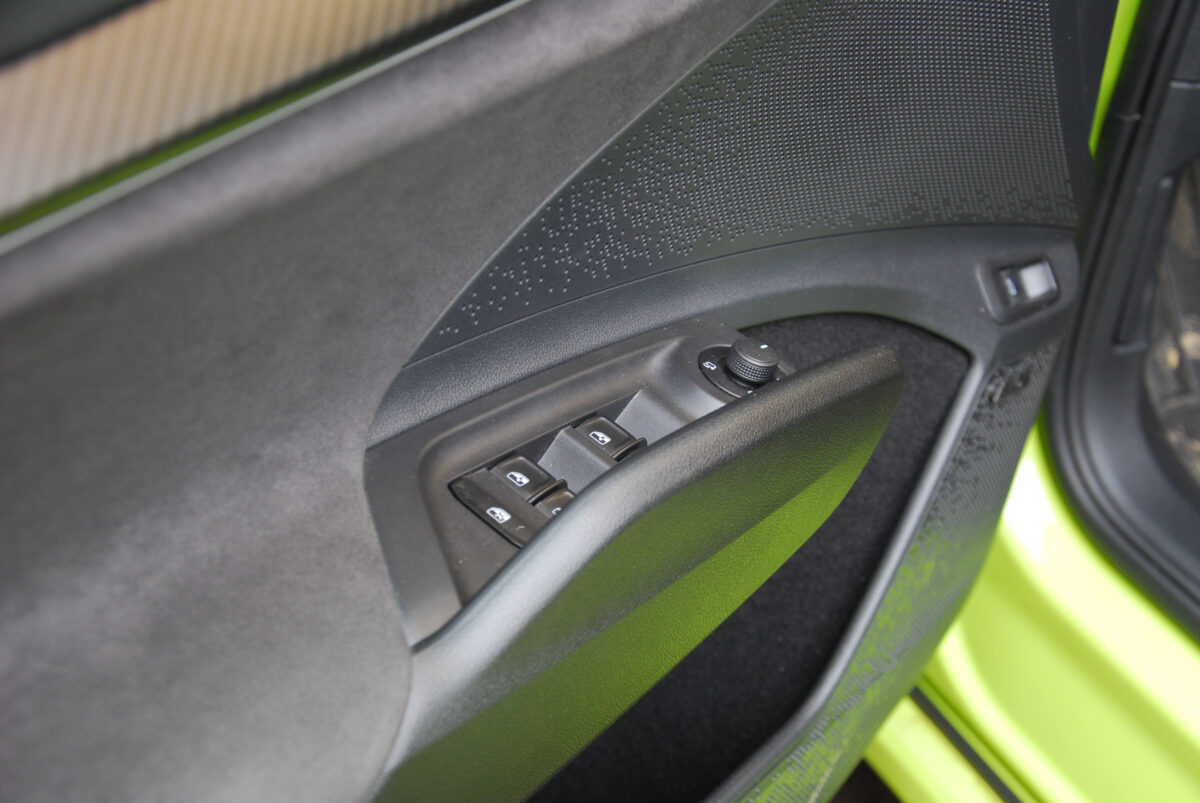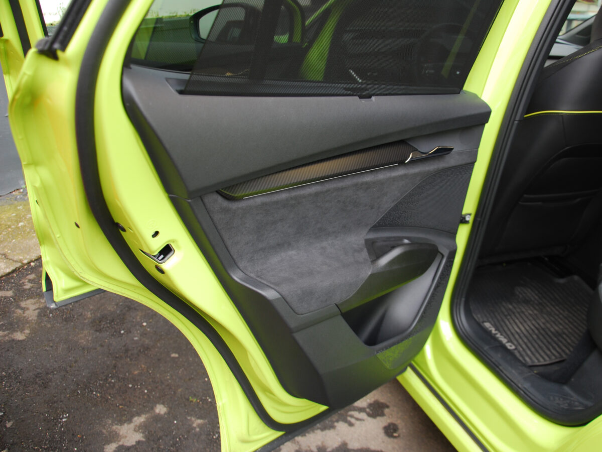 Persze mindez csak akkor igaz, ha oda akarsz lépni neki. Talán ez a legszebb az egészben, hogy minden pillanatban van választásod. Merthogy a sportos hangolás és a 6,5 másodperces százas sprint fel sem tűnik, ha nem akarod szándékosan kipróbálni az erejét. Ez az autó ugyanis nem kérkedik, nem tolja a sportosságát az orrod alá. Ha óvatosan vezeted, akkor egy kényelmes, tágas, belül is remek anyagokkal és dizájnnal operáló, ízig-vérig modern villanyautó marad. Az Alcantara-szerű borítások és a bőrözött kormány azonnal olyan színvonalat adnak a beltérnek, ami még akár fölé is helyezhetné a 30 milliós ársávnak, ráadásul a memóriás, elektromos deréktámaszos sportülések ugyanúgy kényelmesek hosszabb távokra, ahogy a kanyarokban is remekül tartanak.