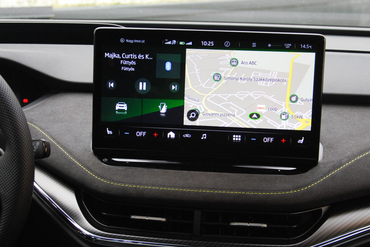 És ha már szóba kerültek a hosszabb távok: ezzel az autóval magyar viszonylatban nem lesz probléma az évi néhány országjáráskor sem. Persze, ha napi szinten 600 kilométert jársz munkaügyben, vagy netán nyaranta hatszor szeretnél kocsival legurulni a tengerpartra, akkor még mindig nem ez a te világod, ám ebben az esetben neked kell elfogadni, hogy nem vagy átlagos felhasználó. Az említett átlagos felhasználóknak ugyanis bőséggel elég lesz a WLTP szerint 504 kilométeres hatótáv. Meglepő módon, ha kimondottan erre figyelsz, akkor hozható ez a laboratóriuminak tűnő érték is, ám lépjünk a realitás talajára: aki ráérez ennek a hajtásnak az ízére, az bizony oda-oda fog neki lépegetni, ha épp üres előtte az útszakasz, akkor pedig már településen belül is inkább a 400 kilométer a reális. Autópályán, 130-ra állított tempomattal többször is 350 kilométer környékén teljesített alattam, ami szintén megsüvegelendő, főleg az akár 175 kilowattos villámtölthetőséggel párosítva, ami lényegében fél óra alatt tud nagyjából 250 kilométernyi újabb autópályás löketet adni.