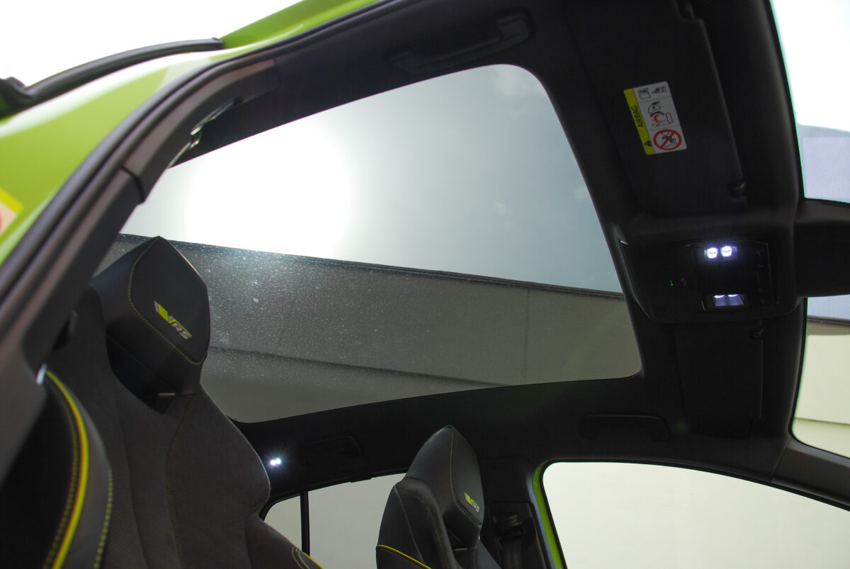 A hatalmas tetőablak rengeteg fényt enged be az utastérbe