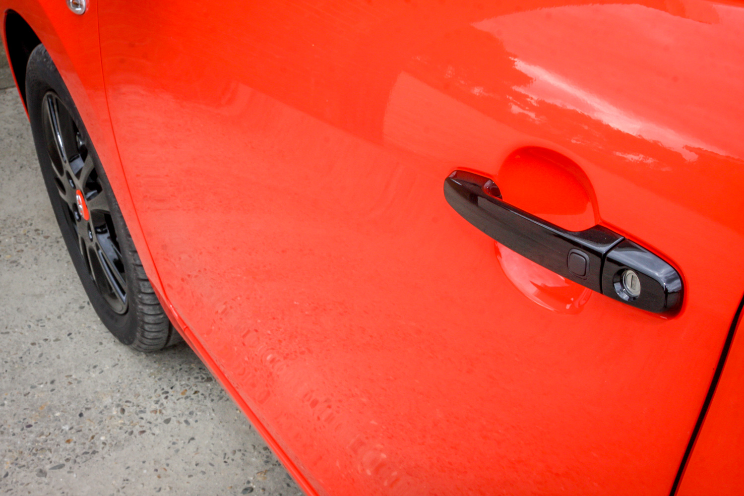 Fekete felni, narancs közép, akár 15 colos kerék egyedi 165/60-as mérettel. És komfortosabb futás. Nem csak kézi, kormány mögül is kapcsolható robotizált váltó is van, utóbbinak a használatát tanulni, szokni kell. Felára 265 ezer Ft