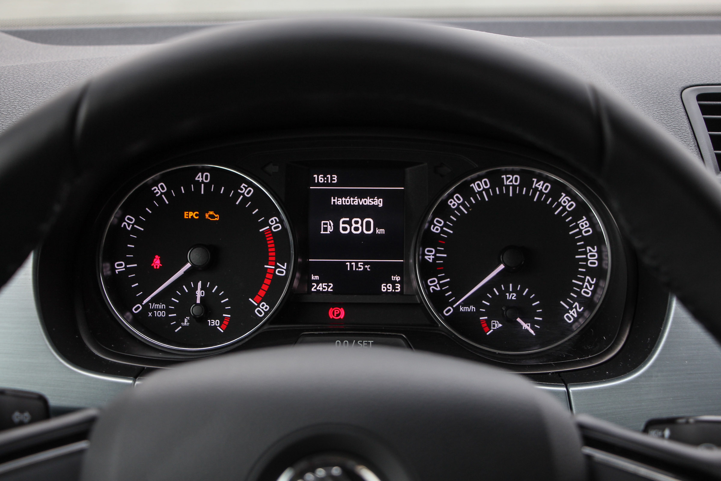 Alapból jó a Clever. Picivel 3,3 millió fölötti árcédulát hord tesztautónk, a Clever alapfelszereltségen kívül pedig nincs benne semmi plusz, viszont minden megtalálható, amire szükségünk lehet. A központi fejegység már érintőképernyős, navigáció nincs, van viszont Bluetooth-kapcsolat, USB- és AUX-bemenet, és figyelhetjük az utazási adatokat is. Nagyjából mindent meg lehet jeleníteni, ami szükséges, és kellőképpen jól is fut a rendszer. Nem érezni rajta semmiféle spórolást, azon kívül, hogy kicsi a kijelző, de ekkora épp megteszi. Van légkondicionáló – igaz manuális – fűthető ülések, elektromos ablakok elöl, csak sajnos még a sofőré sem automata.