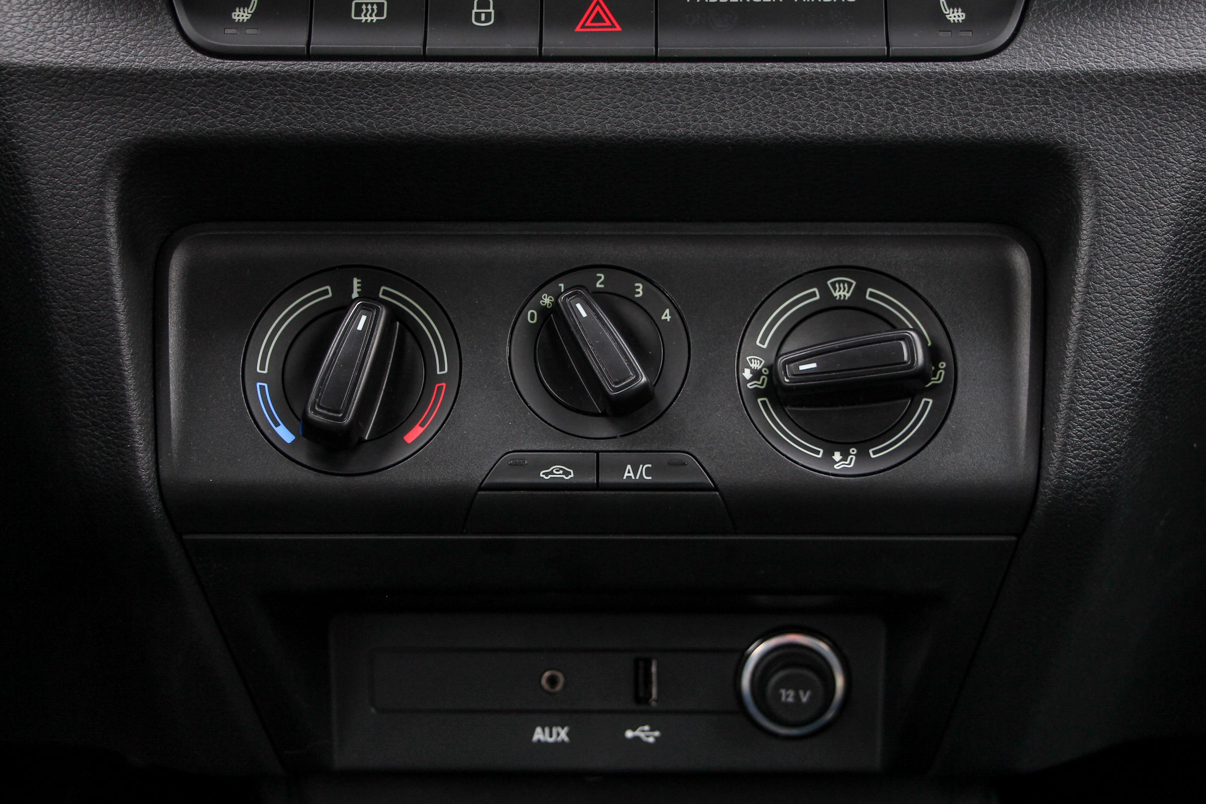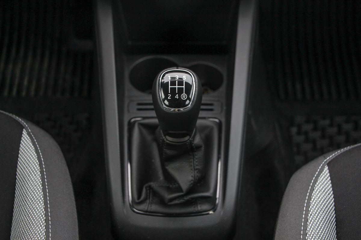 Standard Volkswagen-csoportos műszerek,pici fedélzeti számítógéppel, valamint manuális klíma is jár a Clever szinten. A váltó pontos, egyetlen furcsasága, hogy jobb hátul van a hátramenet