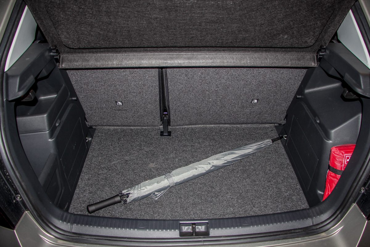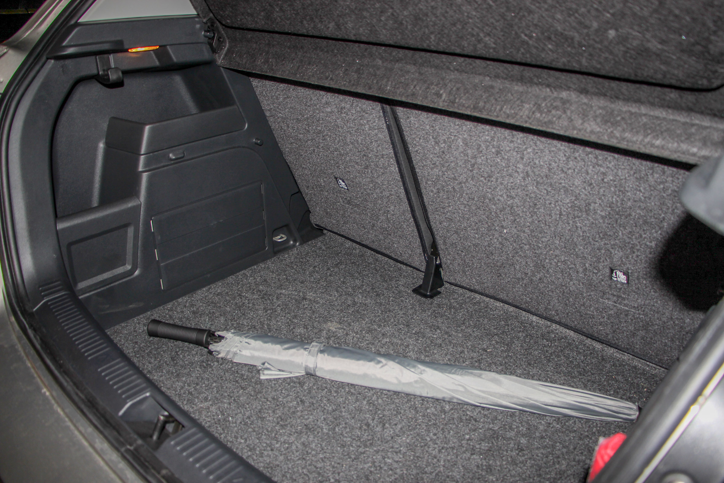 Kategóriájában bőségesnek számító 330 literes csomagteret ad. Elég mély és széles, az ülések ledöntésével marad egy kis lépcső, de nem sokat zavar, a padló alatt csak felárért van pótkerék