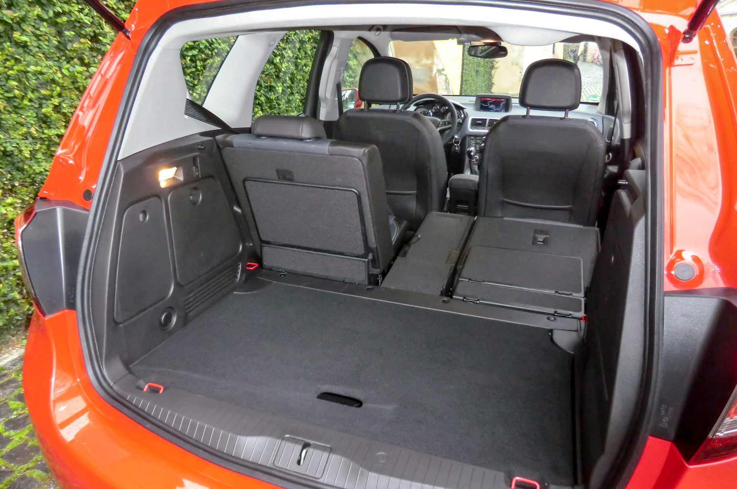 Alapból sem szerény méretű, a lejjebb is tehető padló alatti térrel 400 literes, egyszerű ülésdöntéssel 1500 literig bővíthető a csomagtér