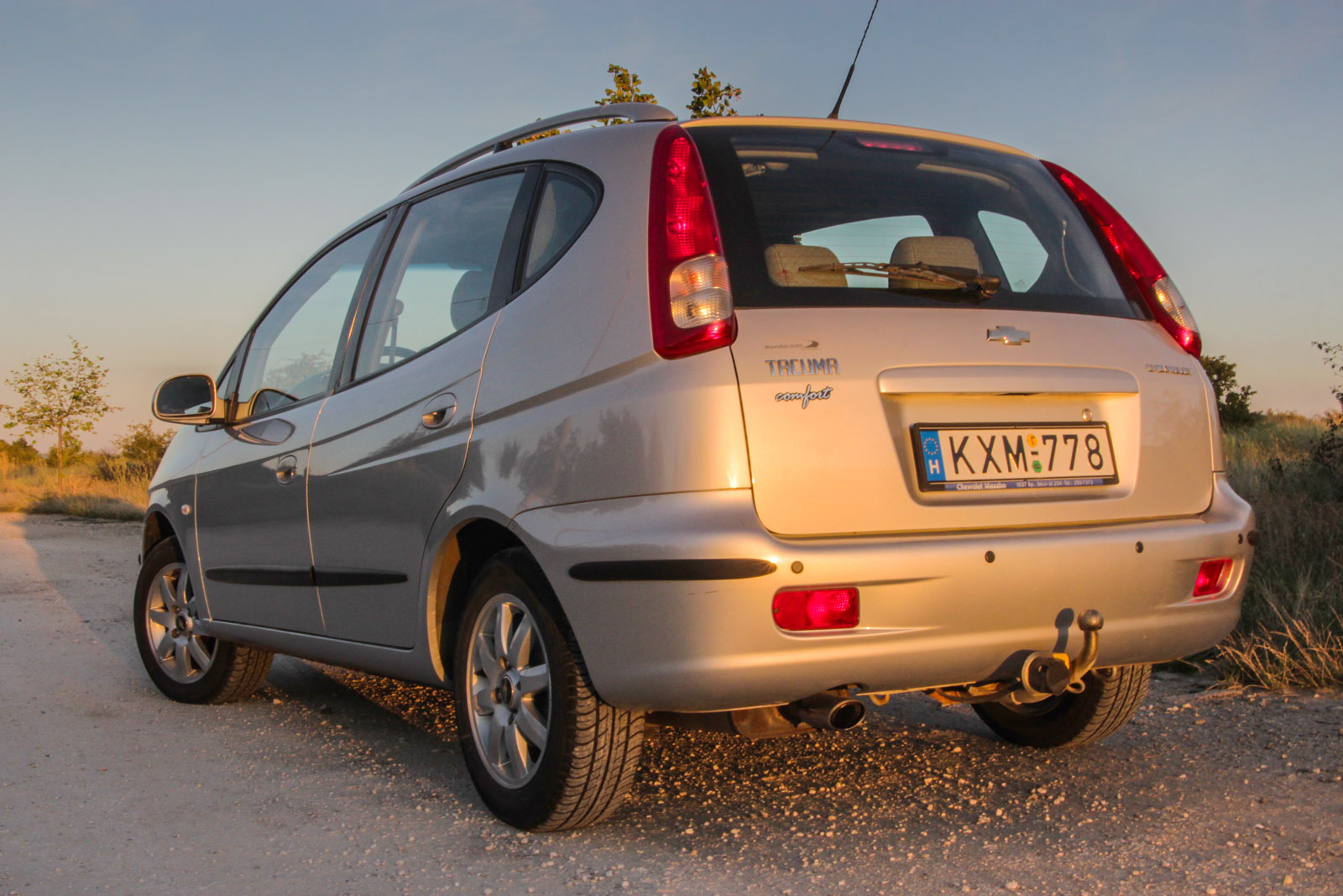 A Tacumának ez nagyon nem ment, sem akkor, sem most, sem amikor megkapta a Chevy masniját, bár kétségtelen, hogy a Daewoo-archoz tartozó bálnaszáj eldobásával egy kicsit barátságosabb lett. Vonalai viszont még így sem futnak sehová, minden pontján elindul egy ív, vagy vágás, aminek a túlsó vége valami egészen oda nem illő részlet. Tojásforma, széles test, behúzott kerekek, ráadásul még az orra is felfelé áll. Sokaknak mégis vonzó volt, vagy csak megsajnálták szegényt, nem tudom, mindenesetre ők tudtak valamit; hogy rengeteg kellemes pillanatot fog nekik szerezni. Főszereplőnk egy elsőtulajos Tacuma a gyártás végéről, 2007-ből, lassan 10 éves, de szinte egyáltalán nem látszik rajta a kor. Olyan tekintetben, hogy rozsdáról még nem is hallott, a fényezése aránylag szép állapotban van, persze egy polírozás ráférne már, egyedül az alufelniken jelent meg némi korrózió.