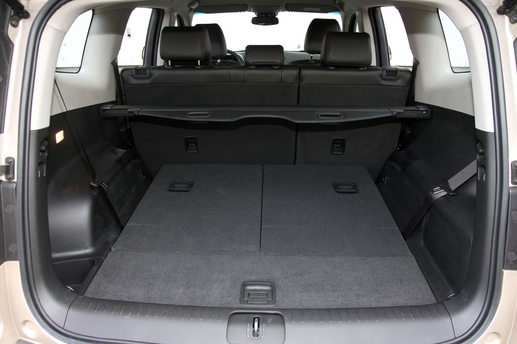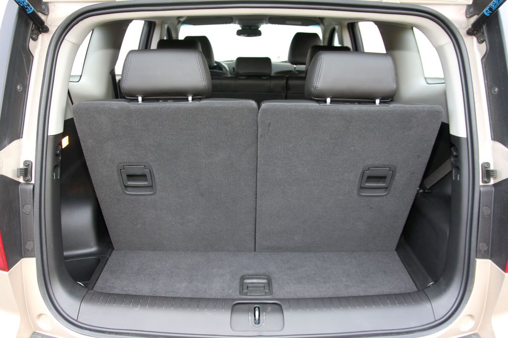 Hét üléssel nagyon kicsiny, öttel behúzott kalaptartóval, annak értelmetlenül alacsony pozíciója miatt szintén szerény, tetőig pakolva vagy üléshajtással bővítve azonban méretes a csomagtér