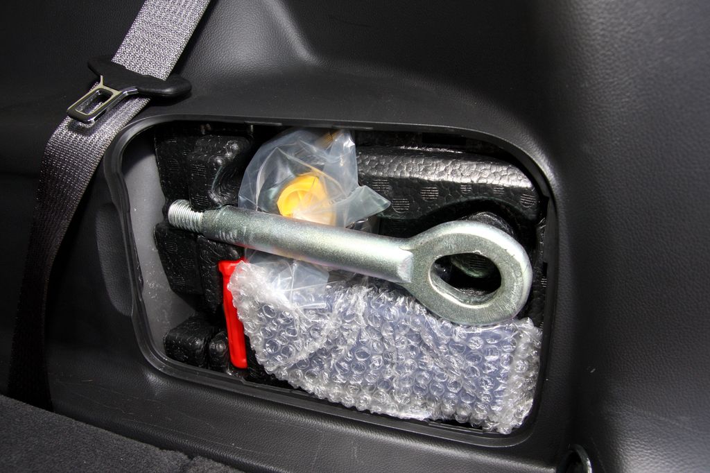 Trükkös és praktikus megoldás, hogy a középkonzol gombsora felbillenthető, a mögötte megbújó flokkolt rekeszbe méretesebb tárgyak is elrejthetők, az USB/iPod csatlakozó is oda került