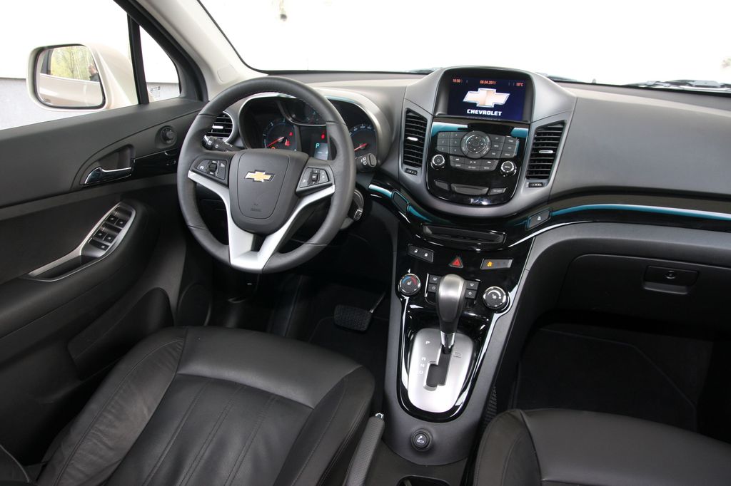 Jól átlátható a márka mai szokása szerint kék színekkel világított műszerpult. Az elektromos ablakok lefelé kivétel nélkül automaták (egy érintésre végigfutók), vissza egyik sem az. A navigáció sok helyen téved, a hifi azonban az iPhone 4-et is jól kezeli - igaz csak médialejátszóként, kihangosító ugyanis nincs az Orlandóhoz. A lábhely alapvetően bőséges, a középkonzol sem túl vaskos, ám mivel a pedálsor túlzottan jobbra tolt, a vezető jobb combjának mégis útban van annak kemény műanyaggal burkolt széle