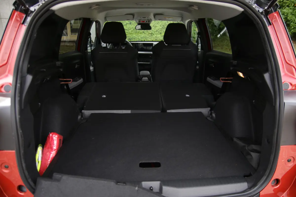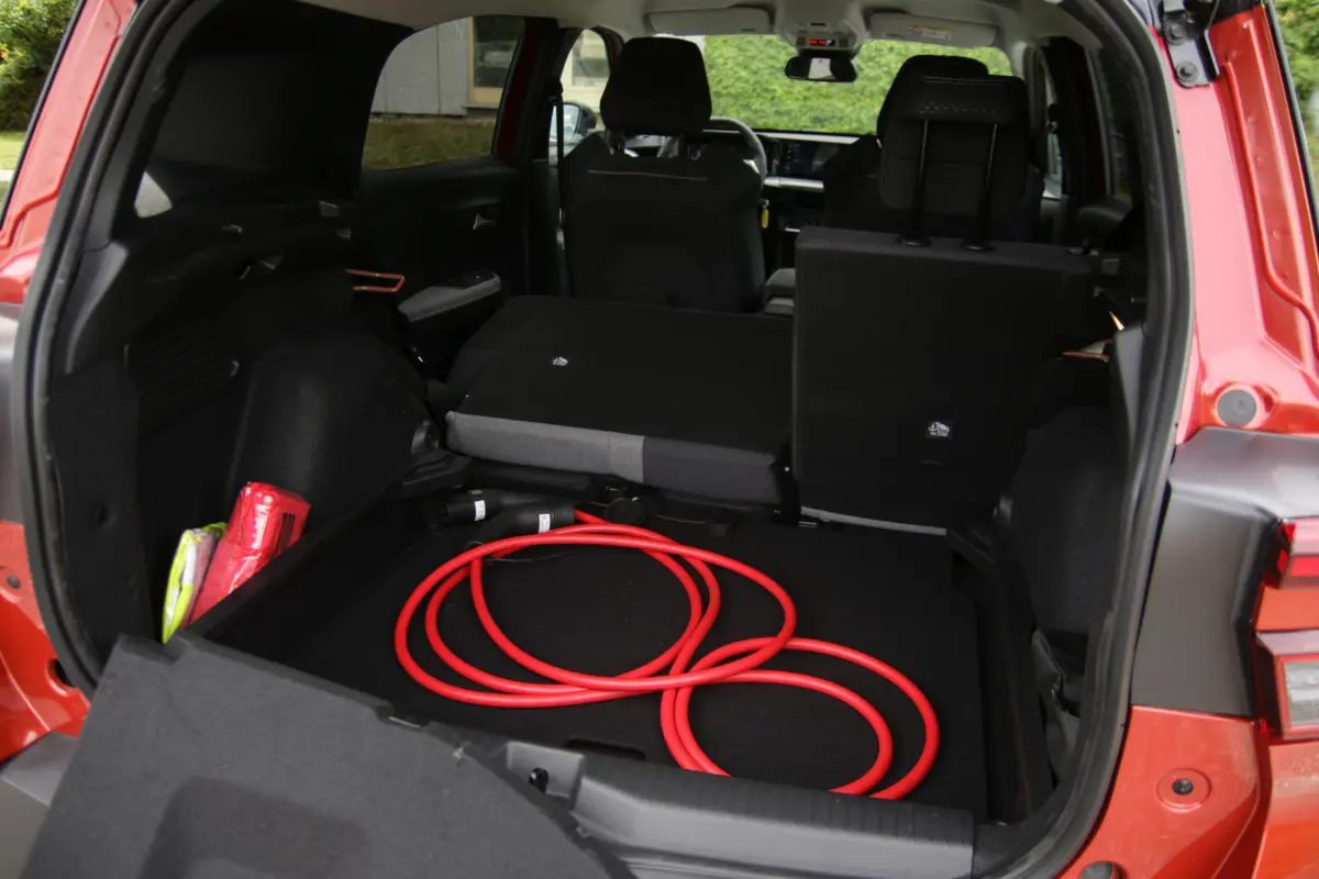 Ezt az extrát viszont az elektromos változat árlistájában hiába keresed, a szükségülések helyén egy szinte kihasználhatatlanul nagy csomagtartó tátong a második sor mögött. A hivatalos érték 460 liter, ám ebbe beleszámít a padló alatti rész is, ahol - frunk híján - jó eséllyel a töltőkábeleket fogod tárolni. Persze, akár le is teheted az elválasztót legalulra, hogy egy nagy tér legyen. Ülésdöntéssel akár 1600 literre is bővíthető, a padló felső állásában pedig még az alja is sík a hatalmas raktérnek. Hogy milyen lenne hétülésesként? Sajnos erről még nem tudok nyilatkozni, ám én is kíváncsian várom, hogy miként fért be 2 ülés egy 500 liter alatti csomagtartóba.