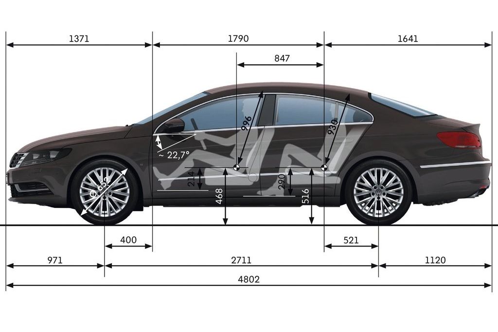 LED-es hátsó lámpák, krómcsíkok, s akár kétoldali kipufogó is jelzi a 4,8 méter hosszú, a négyajtósnál alacsonyabb, szélesebb, mutatós és elegáns CC felsőbbrendűségét