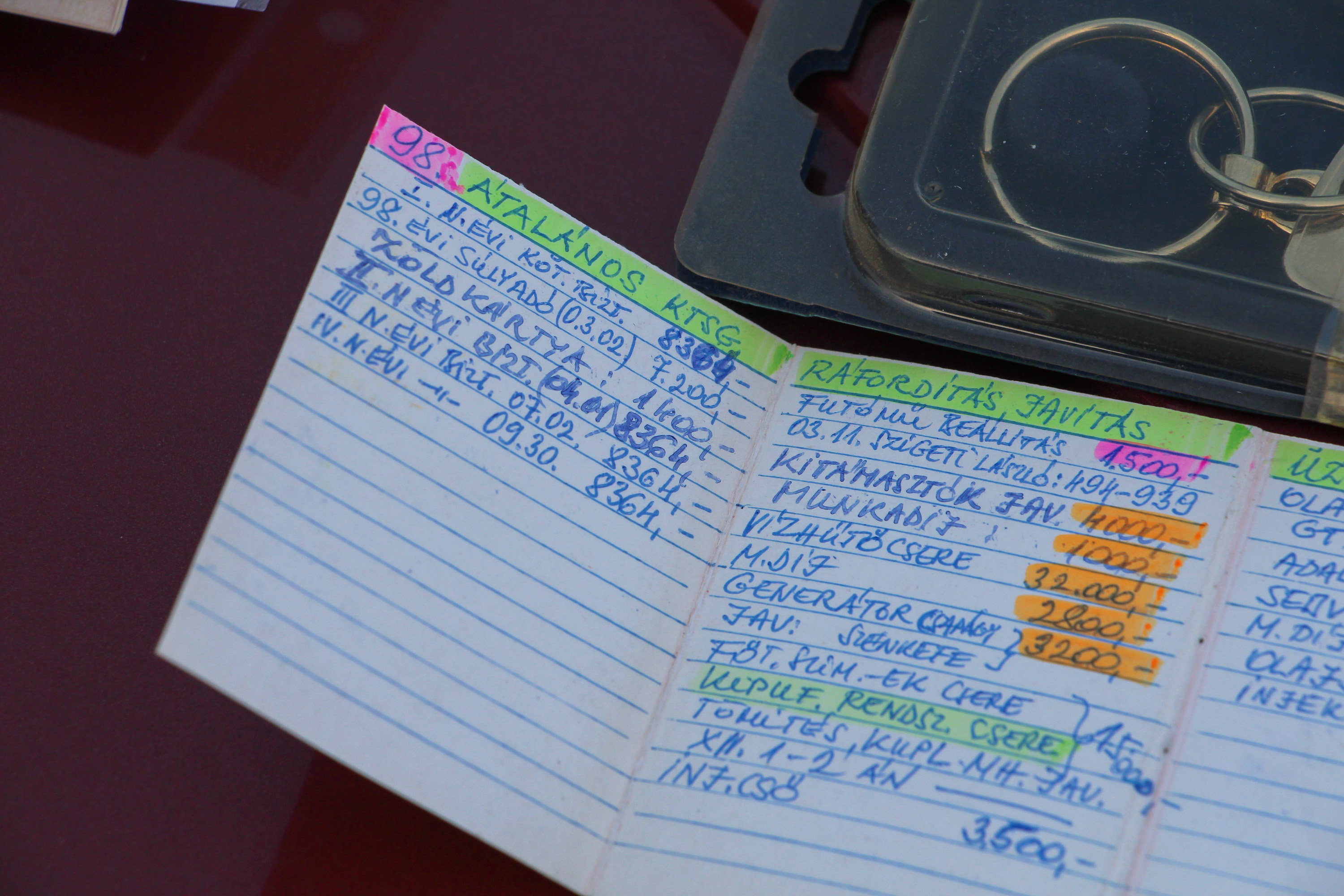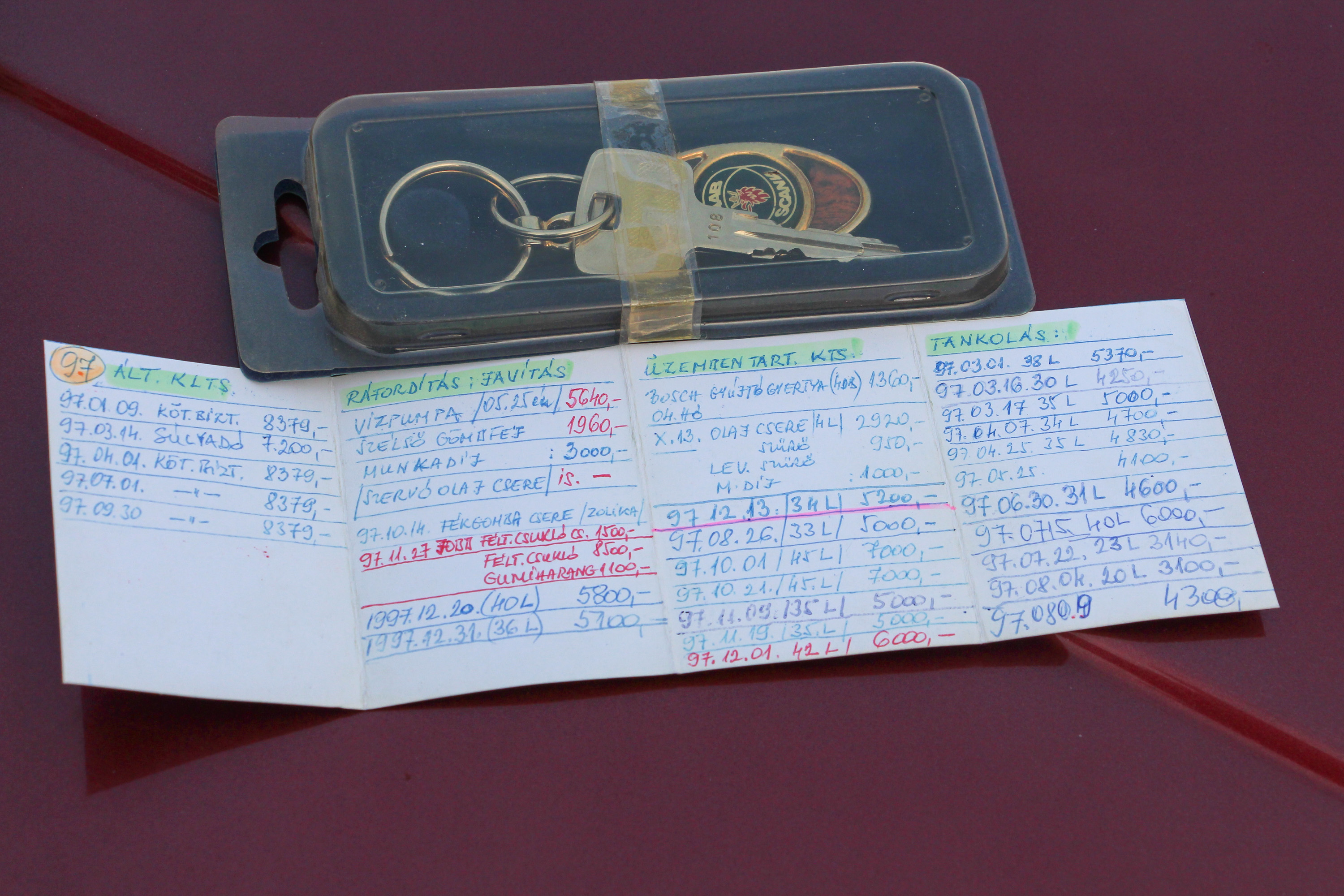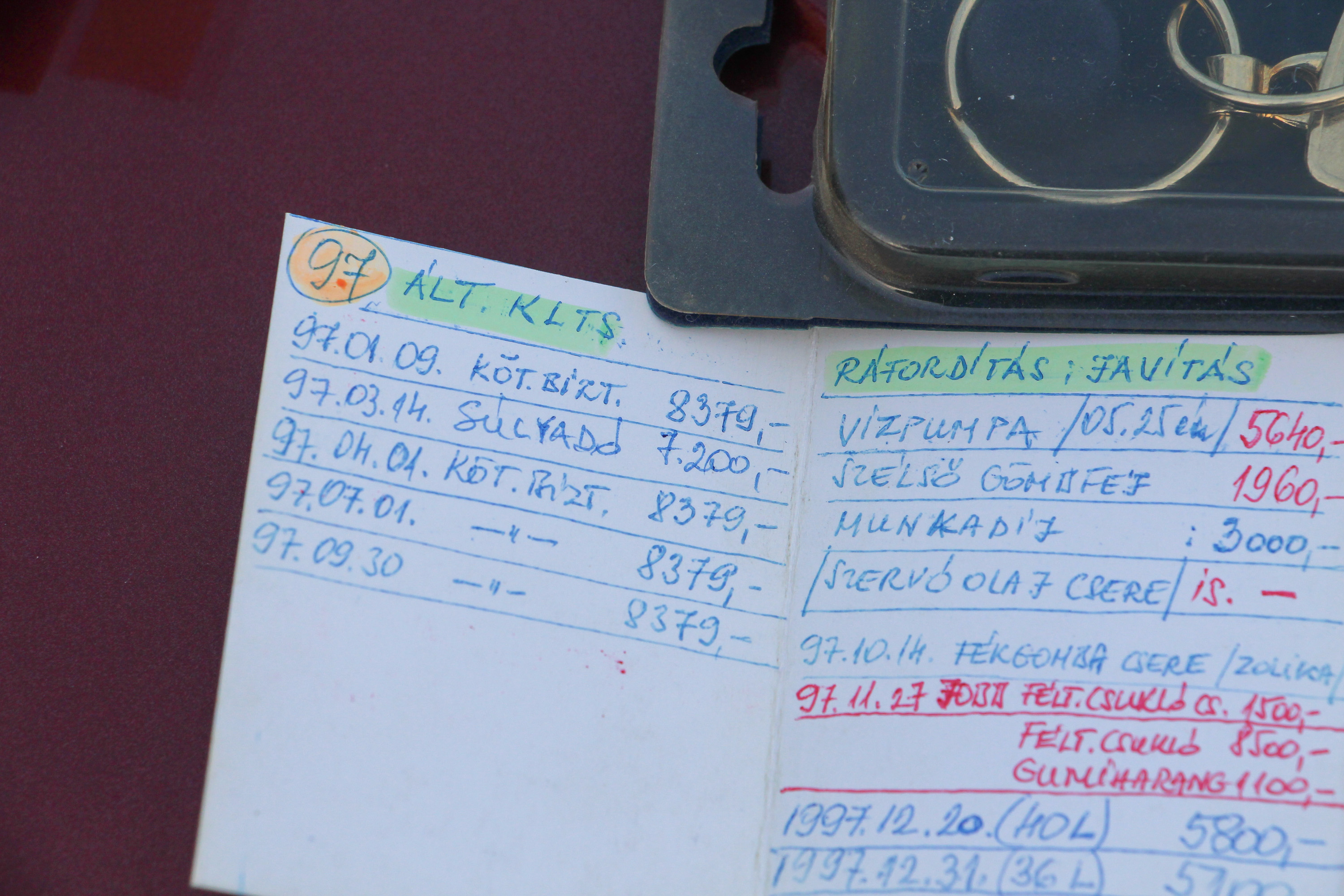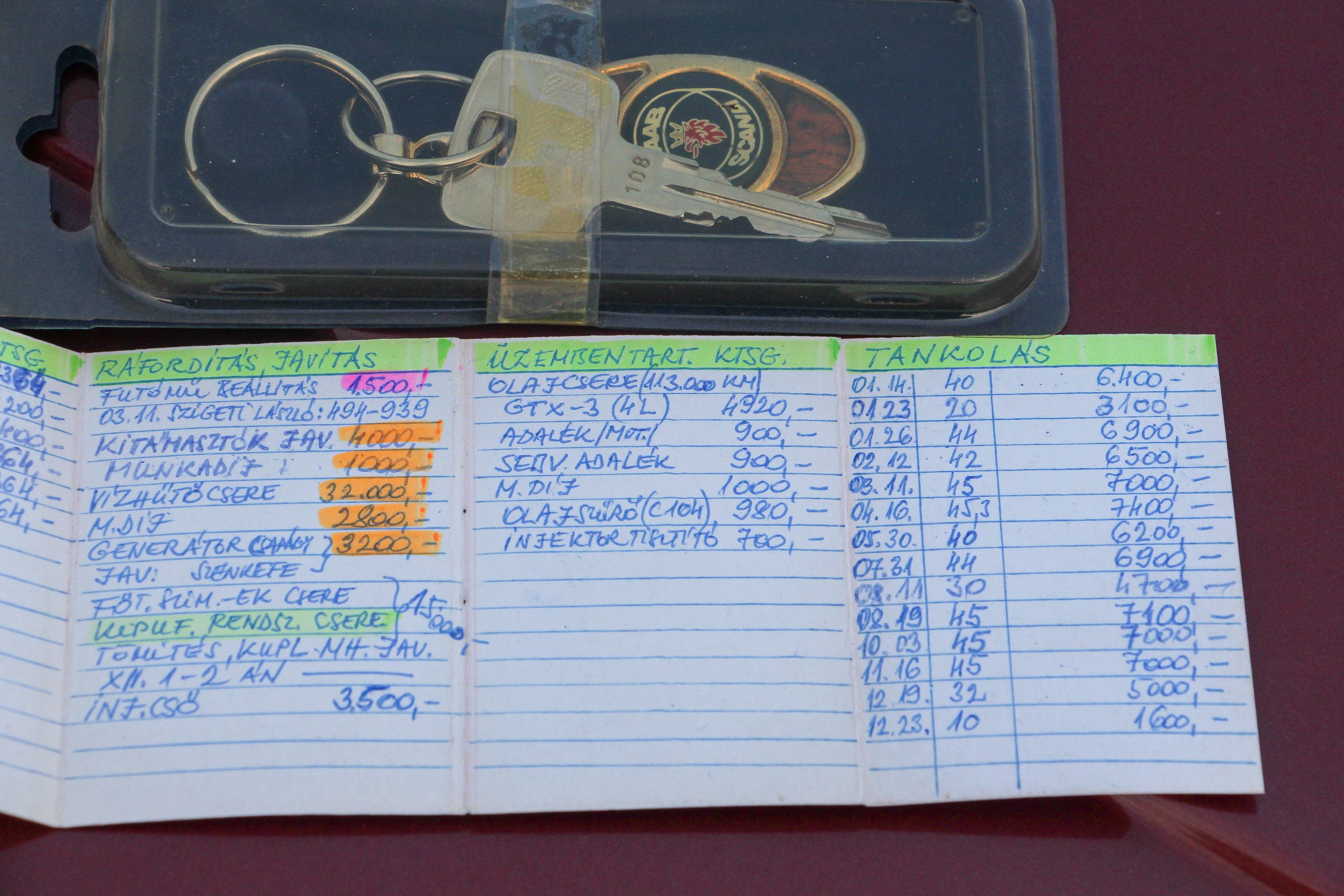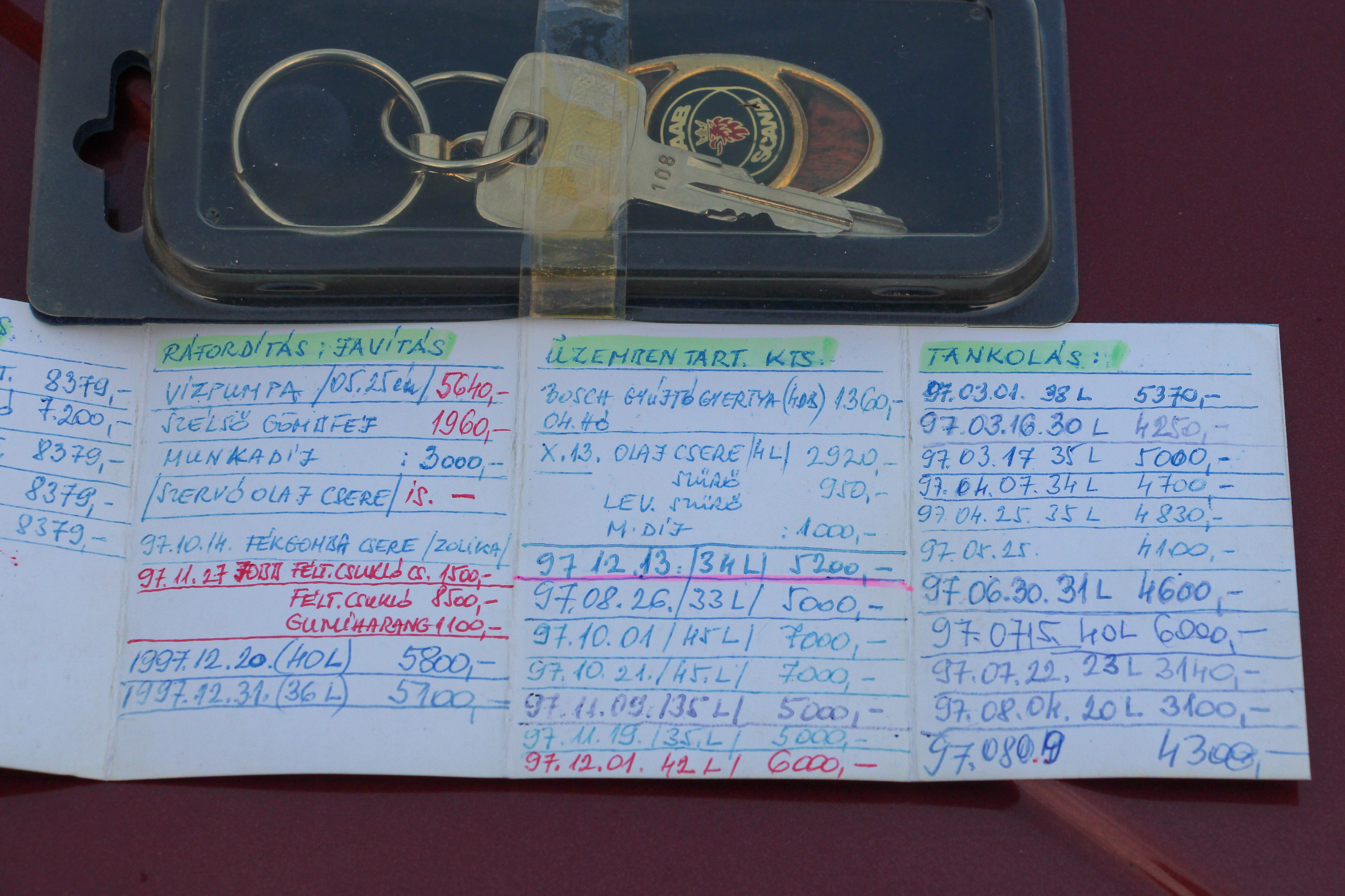 Persze megvan benne a harmincéves autó bája is. Főként úgy, hogy ez egy felújításmentes példány, órájában alig több mint 180 ezer kilométerrel, ami ráadásul igaznak tűnik. 1995-ben, tehát kereken tízévesen került Magyarországra. Egy lajosmizsei bácsihoz, aki ha nem is Excel táblában, de papíron minden egyes mozzanatát rögzítette az autónak. Az elmúlt 20 év összes karbantartása, bürokratikus költsége és tankolási adata is megvan papíron. Ezekből a feljegyzésekből egyértelműen látható, hogy egyre ritkább használatot kapott a 900-as. Hibák természetesen vannak, már a naplóból is látható, hogy a féltengelyek csuklói nem szeretik a hazai utakat, kanyarban az egyik most is „darál" az autóban. Komoly rozsda nincs, de ez annak köszönhető, hogy a tipikus betegségnek számító ajtó és kerékjáratív-korróziók már kezelve lettek. Az autót tavaly tavasszal megkaparintott második hazai tulajdonos alváz- és üregvédelemre is költött már, s a kuplungtárcsát is kicseréltette. Finomítani való még bőven lenne, alkatrészként néhány komplett lámpa, teljes dísztárcsa-szett is lapul a csomagtérben. Lehet velük legózni, mert az egyik hátsó lámpa például sérült. Nem annyira persze, hogy érdemes lenne felrakni a pótpéldányt.