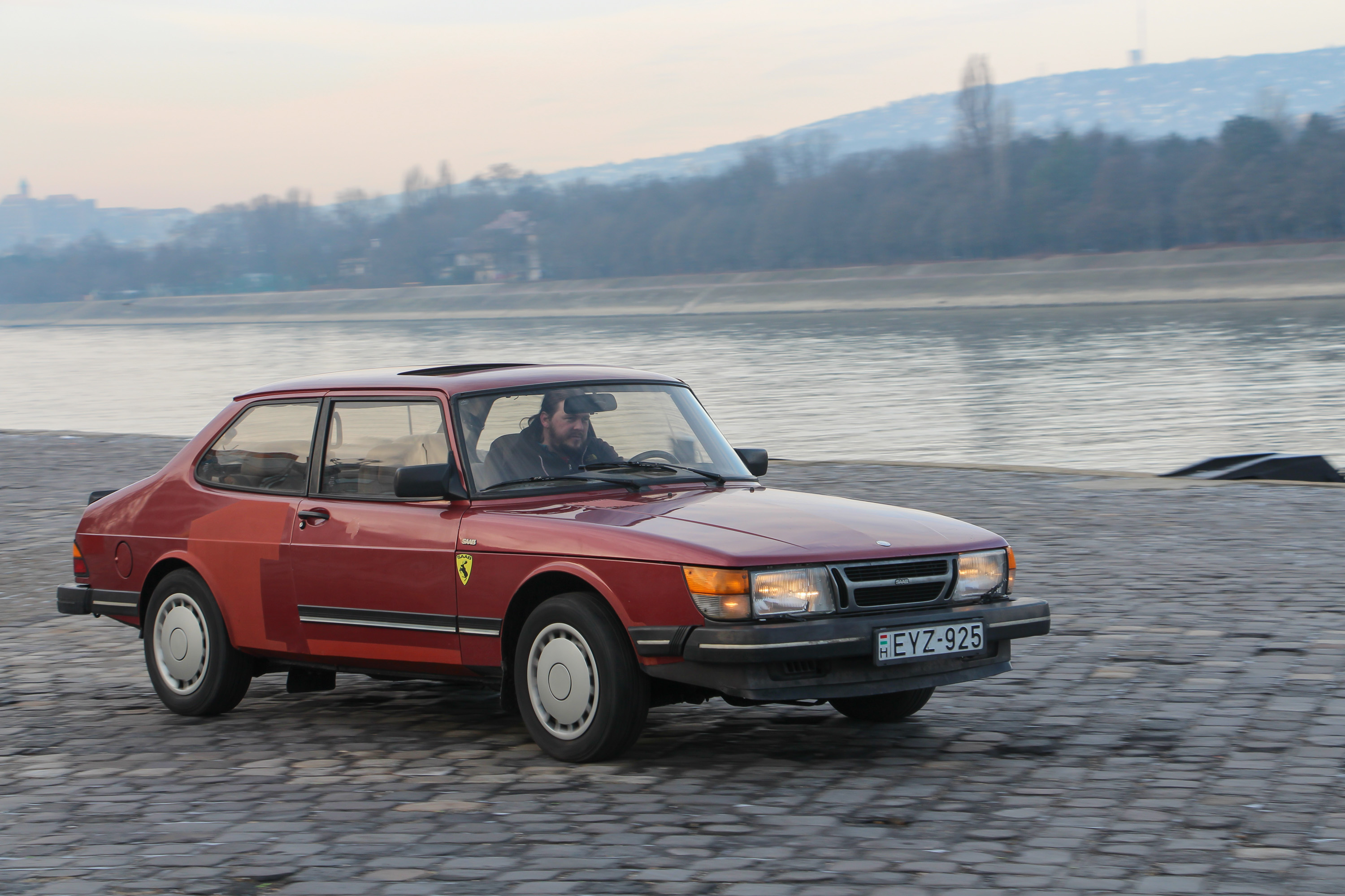 Mai szemmel szinte felfoghatatlan, de igaz, az első 900-as Saab 16 éven keresztül, 1978-tól 1994-ig készült, szimpla és dupla karburátoros, injektoros, szívó és turbófeltöltős motorokkal egyaránt. Az e példányba is épített 2,0 literes, 116 lóerős injektoros a leghosszabb ideig kínálatban tartott volt, 1979-től 1989-ig készült. Nem egy kihegyezett, ugyanakkor kellően erős gép. A nem épp erőtől kicsattanónak látszó, kereken 30 éves bordó példány tud is meglepetést okozni a forgalomban. 100 km/órára álló helyzetből 11,4 másodperc alatt gyorsul, végsebesség 175 km/óra. Nem próbáltam, de tulajdonosa szerint a 160 km/órás utazótempó nem gond a kocsinak. A váltó ötfokozatú, hosszú karjával nagyon nem mai darab, de jól kapcsolható. Vezethetőség szempontjából igencsak jó pont, hogy nem csak az amúgy elöl-hátul tárcsákkal dolgozó fékrendszer, a kormánymű is szervorásegítéses. Összességében tehát egészen mai a koros 900-as.