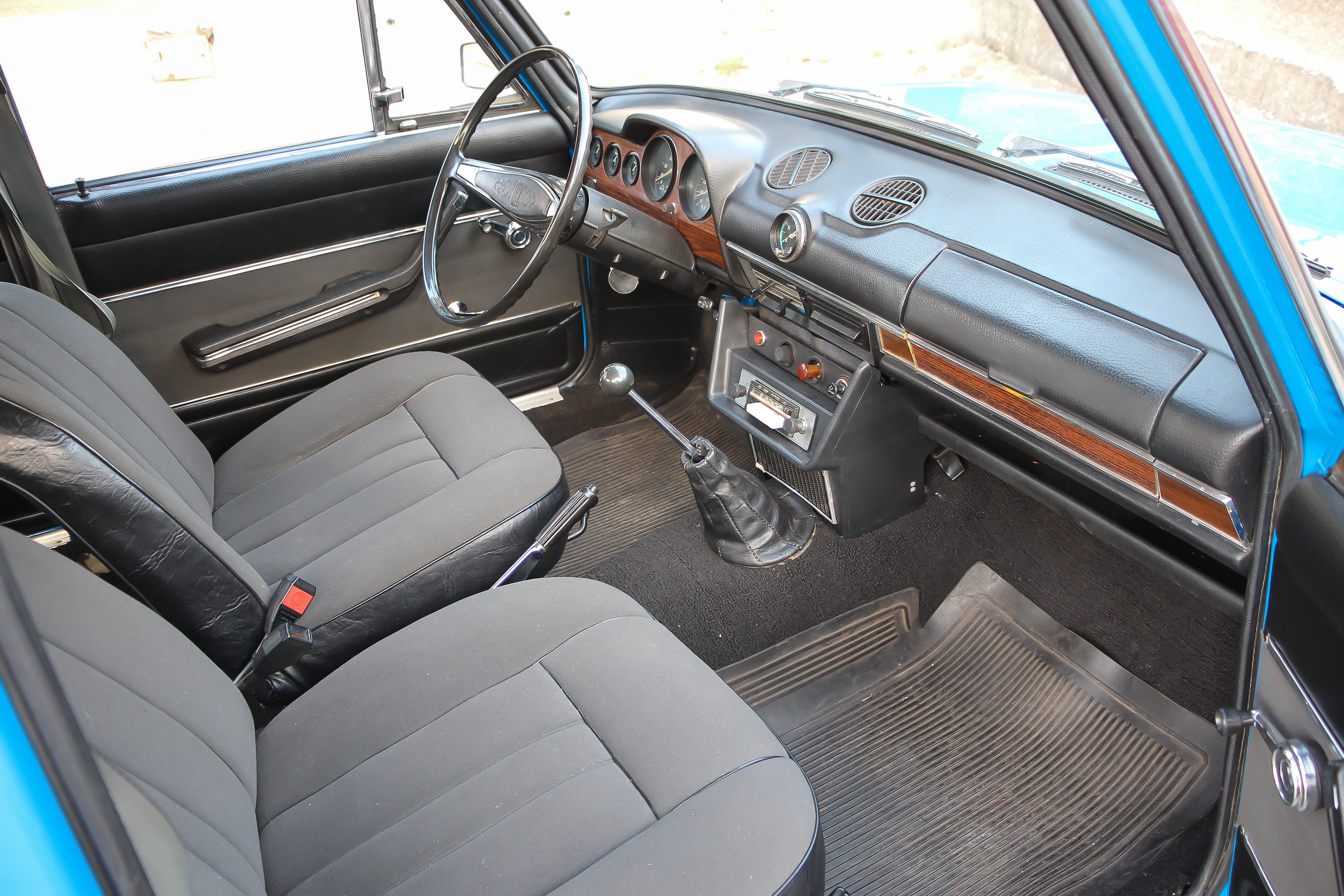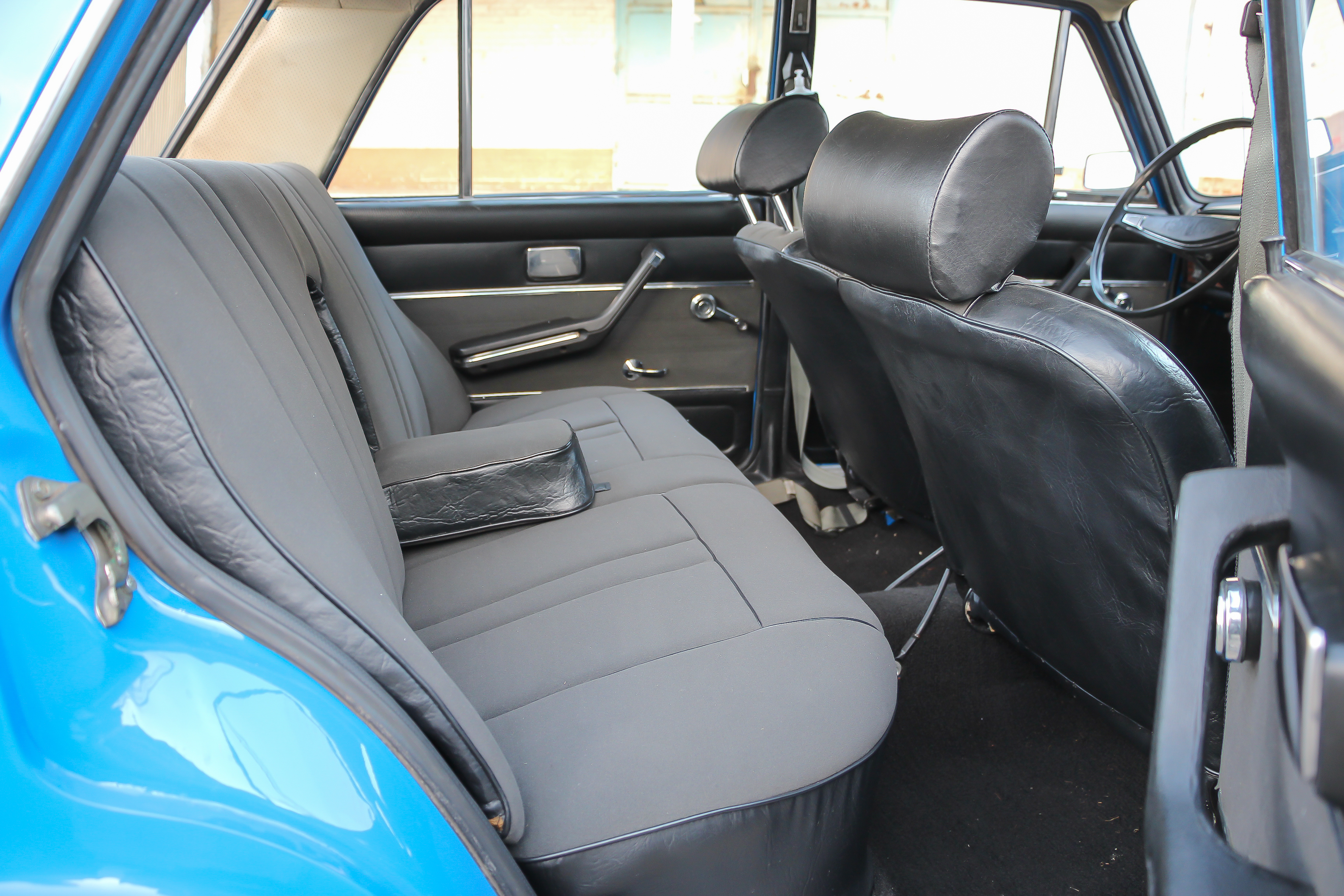 A fekete műbőr és a műanyagok, a barna famintázatú tapéta, a kerek órás műszerfal és a felújítás után az eredetinél szebb és finomabb szövet kicsit olaszossá, de mindenképp kívánatossá teszik a szovjet gép utasterét