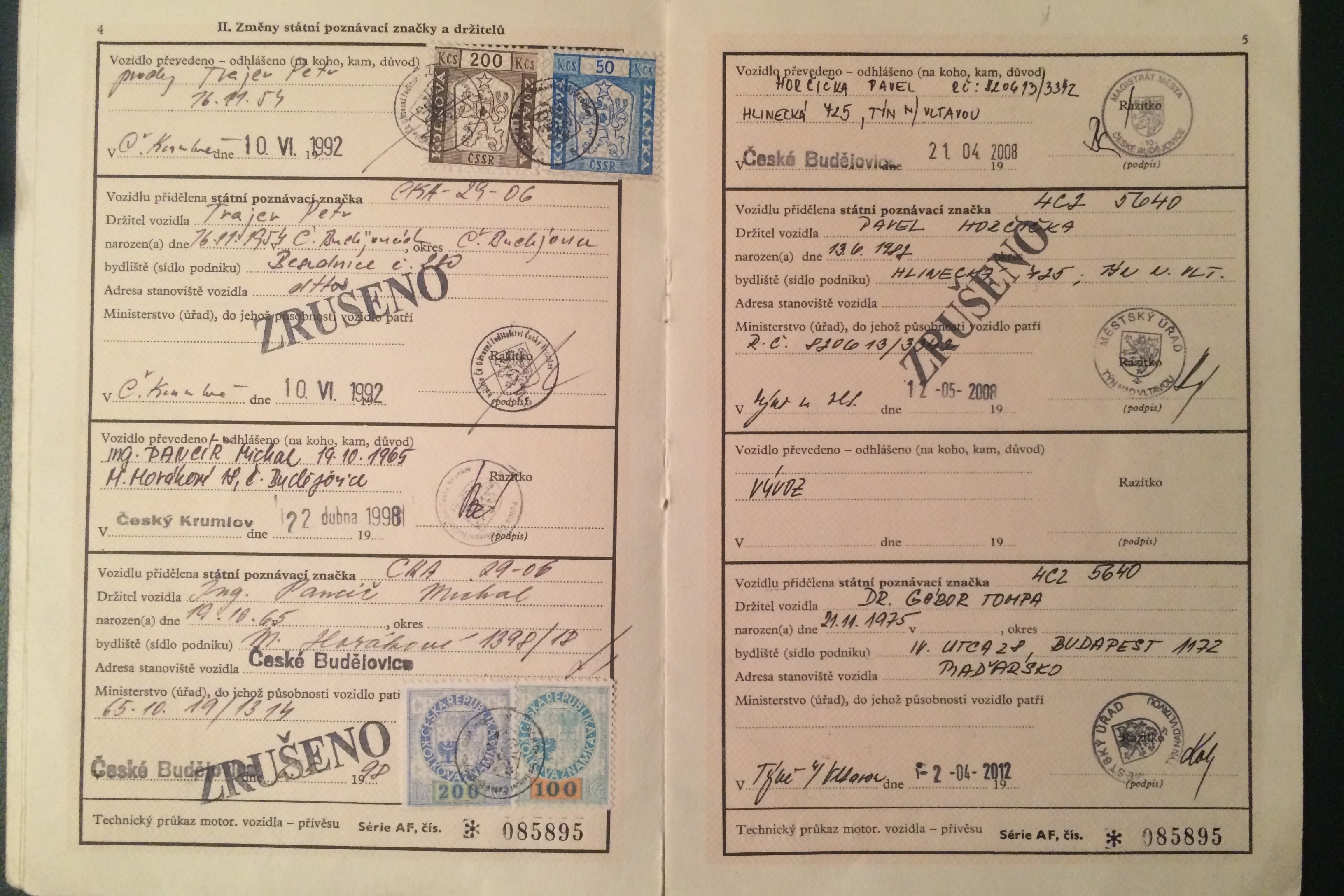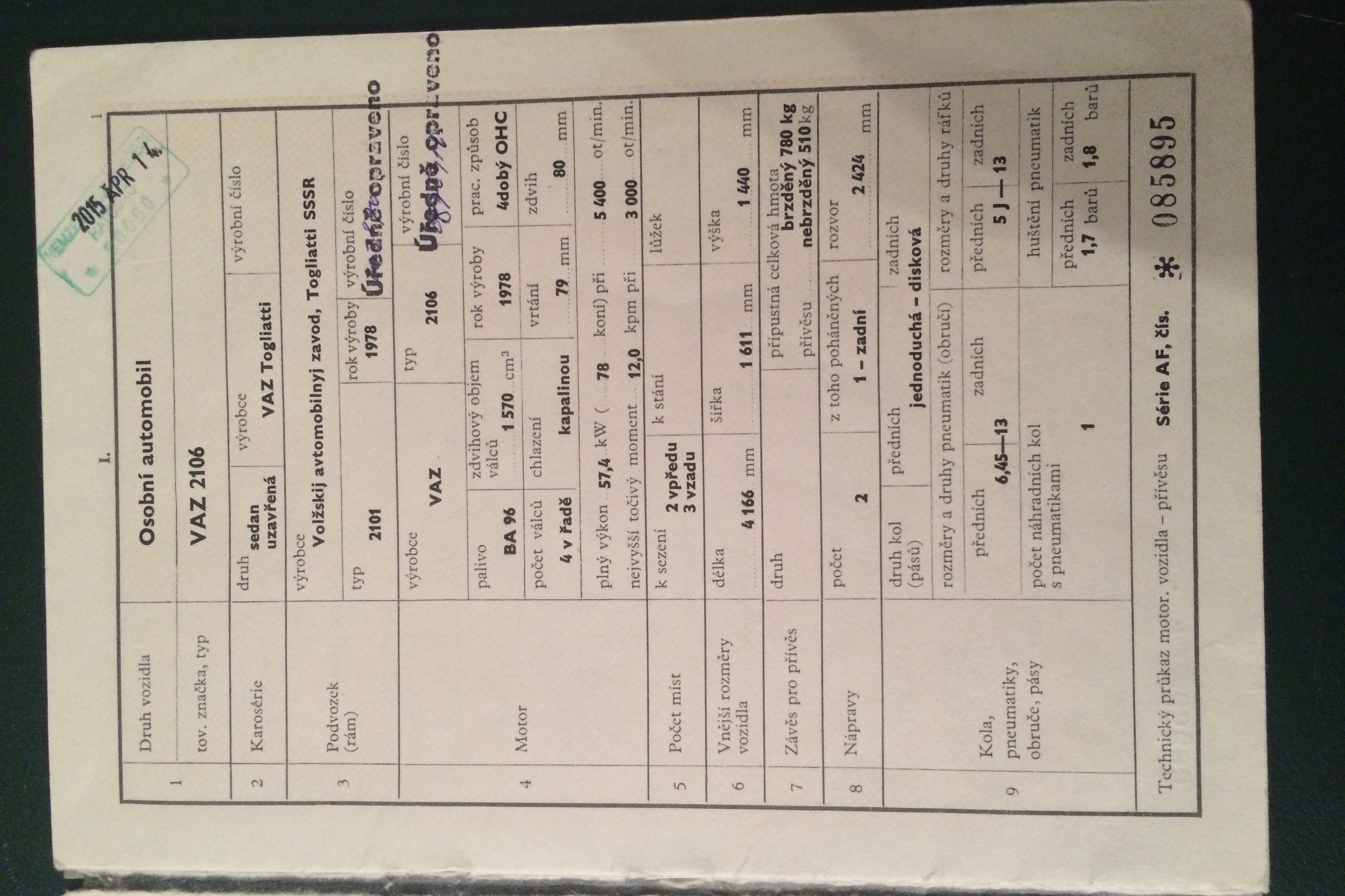 Az egykori Csehszlovákiából származó Ladának természetesen megvan a korabeli technicky prukazja, azaz a forgalmi engedélye is. Nem csehszlovákozós vicc, de az eladót tényleg Pavelnek hívták