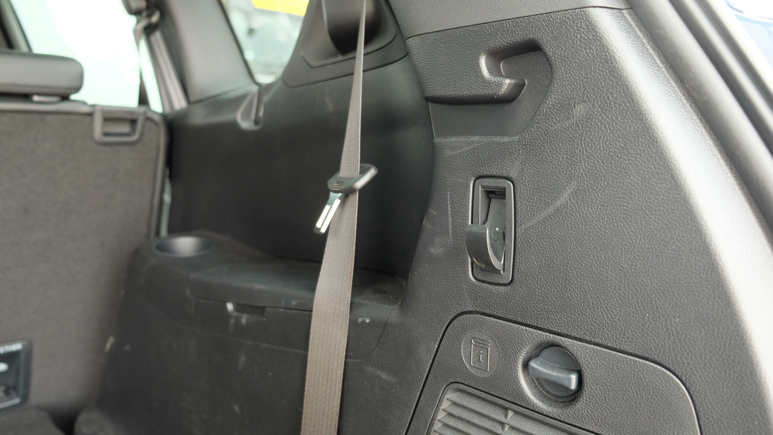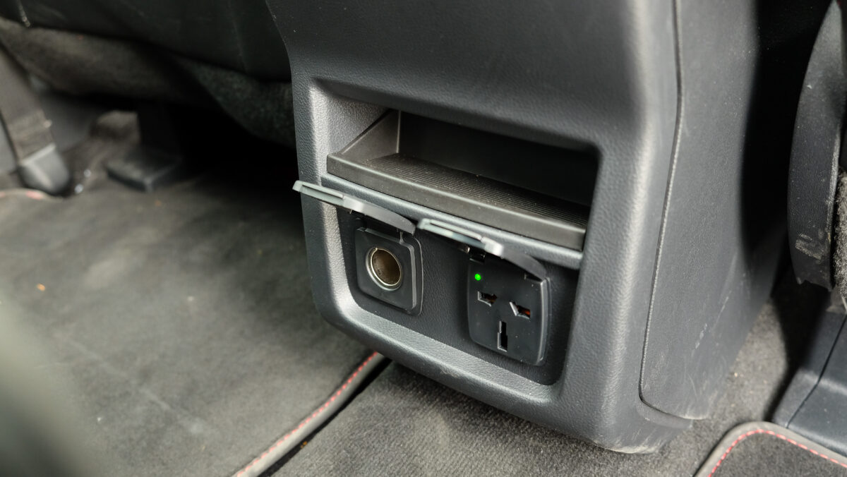 12V-os csatlakozó a csomagtérbe is jutott, hátulról gombnyomásra fektethetjük síkba a második és a harmadik sor üléseit