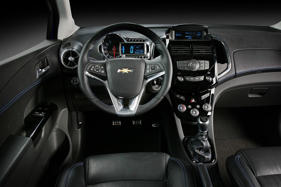 Ha az Opelnek lehet Corsa GSI a kínálatában, akkor a szegről-végről rokon Chevrolet is előrukkolhat valami hasonlóval. Az Aveo RS Concept alapján kivitelezhető sportos modell sorsa még nem dőlt el véglegesen, de a kezdetek biztatóak. Az optikailag alaposan megdolgozott ötajtós kisautónak jól áll a hátsó rejtett kilincs, az új arculathoz igazodó tekintélyes hűtőmaszk, és elképesztő, hogy már ebben a kategóriában is malomkeréknyi felnikre húzzák a gumikat - az Aveo RS alatt 19 colos papucsok feszülnek! Az utastérben fényes felületű, fekete műanyag betétek a dekorációk, sok a bőr, és ízlésesen a karosszéria kék színe köszön vissza a tűzéshez használt cérnánál. Mivel az Opel egyre több benzines turbómotort használ, a mérnököknek elegendő volt egyet kiválasztani a Chevy-hez: a választás az 1.4 ECOTEC Turbo erőforrásra esett, amelynek 140 lóerős teljesítménye (hatfokozatú manuális váltóval társítva) ideálisnak tűnik, ráadásul, ha az autó valóban kapható lesz, nem foga nehezíteni a jóval erősebb Corsa GSI piaci szereplését.