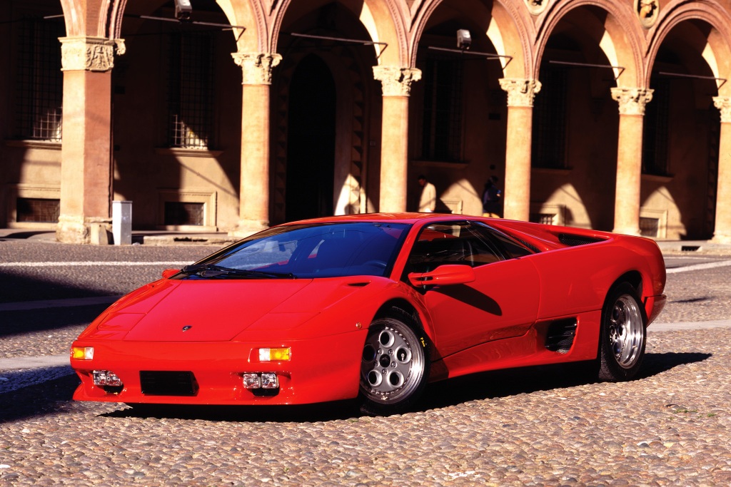 Az ördög nevét magán viselő Diablo ettől persze kicsit sem lett unalmas, el is költöttek hat milliárd olasz lírát a fejlesztésére. Nevében nincs semmi vallásellenes. Az eredete a cégalapító Ferruccio hobbiját megidézve egy régi, híres spanyol versenybikára vezethető vissza. Az eredeti Diablo 1990-ben még egy hátsókerékhajtású, V12-es középmotoros sportkocsi, ami 5,7 literes lökettérfogatból 499 lóerőt hozott ki 7000-res percenkénti fordulaton, 580 Nm nyomatékot 5200-on. Az 1998-ig kínált alapmodell egyben a legtöbbet gyártott változat. Bár a gyűjtői értéke ennek a legkisebb, de a menetteljesítményei ma is nagyon komolyak, hát még 25 éve milyen durvák lehettek. A gyorsulása 4,5 másodperc száz km/órára, a végsebessége meg 325 km/óra,de a gyári adatokat több esetben is sikerült a korabeli teszteken felülmúlni.