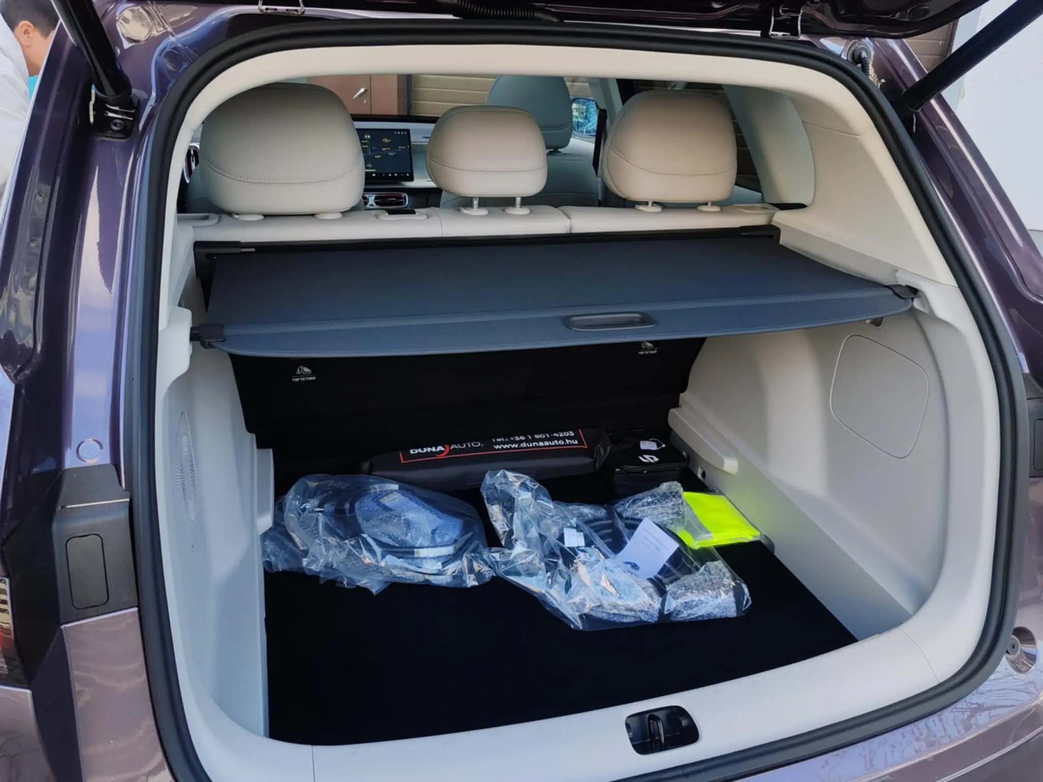 A helykínálat a kategóriához mérten bőséges, a kisebb kabin is elsősorban a szélesség terén érződik, ám attól nem kell tartani, hogy az első ülésen ülőknek összeérne a válla. Így azonban már biztosan csak 4 felnőttnek kényelmes az utastér, hátra csak három kisebb termetű, netán fiatalabb utas fér el kényelmesen. A második sorba is jutott viszont szellőző és könyöklő is, illetve itt is kiemelkedő az anyagminőség. Csomagtartóból most is akad elöl és hátul is, a klasszikus csomagtér alapesetben 420 literes, ülésdöntéssel pedig akár 1415 literesre is bővíthető. Frunk csak a tisztán elektromos változatokban található, hiszen a benzinmotor helyét foglalja el, ez esetünkben 25 literes, illetve a nagyobb változattal ellentétben nincs körbeműanyagozva, így valamelyest olcsóbb hatást kelt.