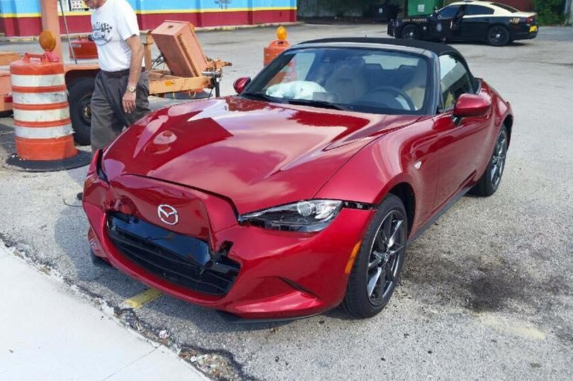 Rögtön az új MX-5 átvétele után balesetet szenvedett azzal tulajdonosa. Az elöl-hátul roncsolódott autó helyett a Mazda felajánlott egy másikat.