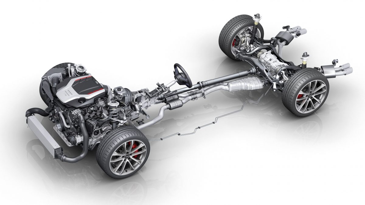 Az Audi quattro hajtása középen továbbra is mechanikusan záró Torsen differenciűlművet használ, az osztómű többtárcsás tengelykapcsolóval osztja a hajtást az első és hátsó tengely között