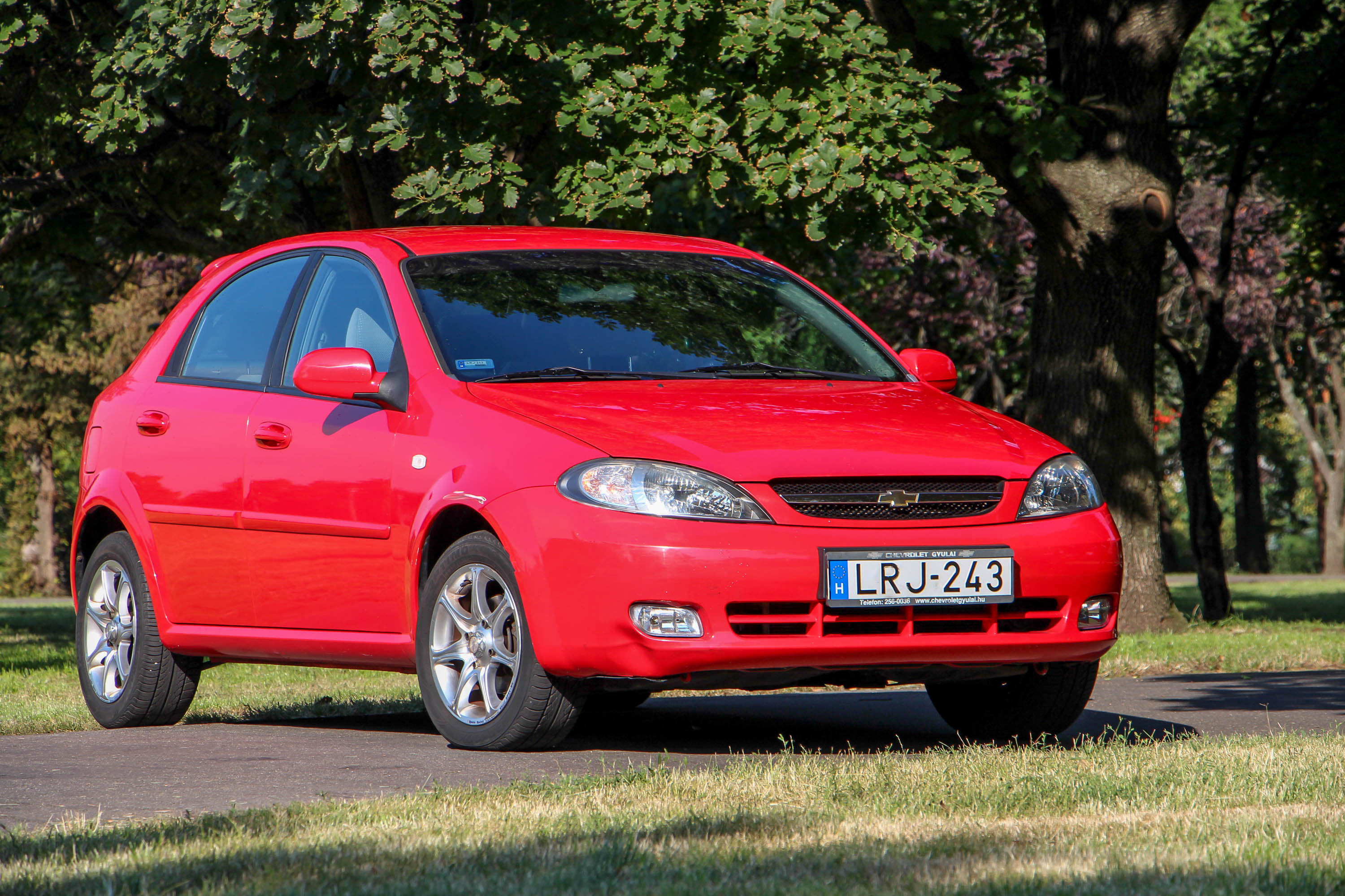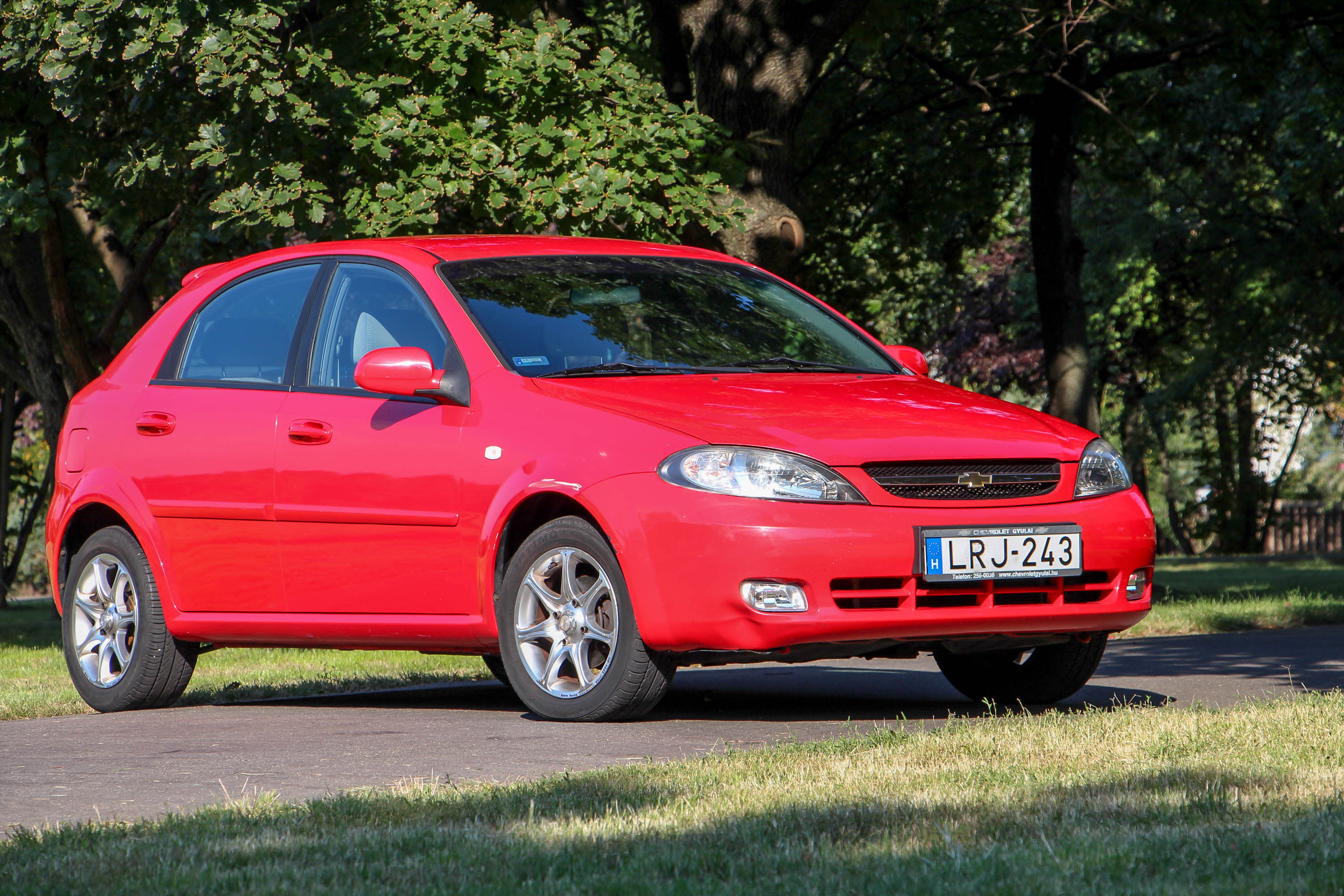 Szemből és főként messziről nézve kicsattanó erőben van a 8 éve gyártott, de csak 6 éve üzembe helyezett Lacetti. Közelről azért látható rajta egy-két apróbb sérülés
